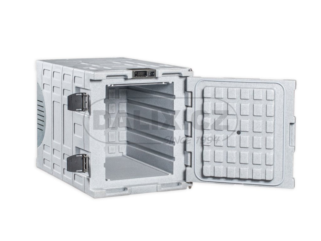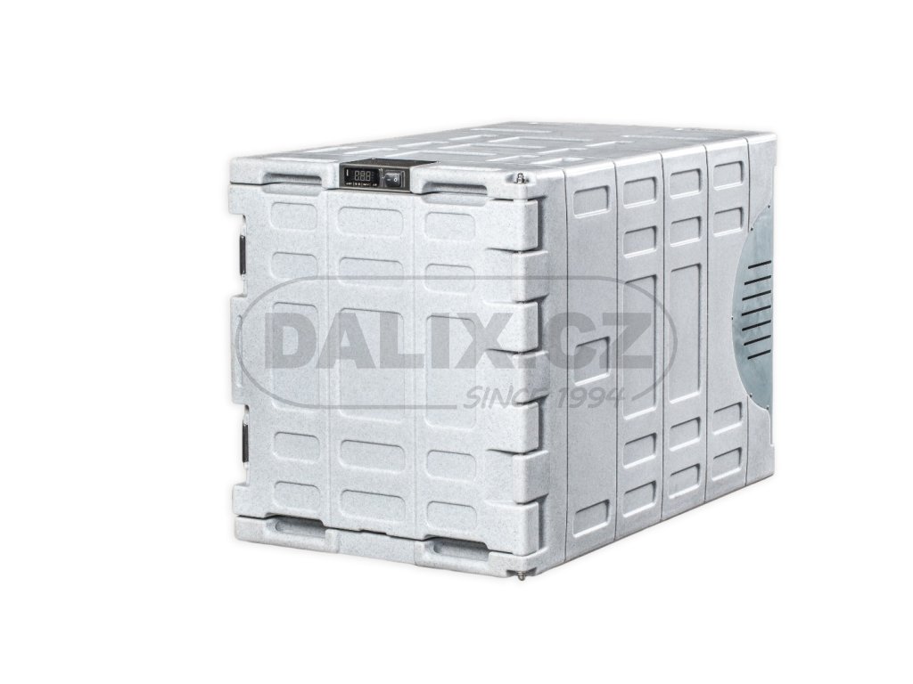 - Box je osazen hermeticky uzavřeným kompresorem Danfoss BD50F s integrovanou řídící jednotkou a ochranou baterie proti vybití. Digitálním termostatem lze variabilně nastavovat a sledovat teplotu uvnitř boxu. Box odpovídá standardům HACCP pro přepravu potravin.