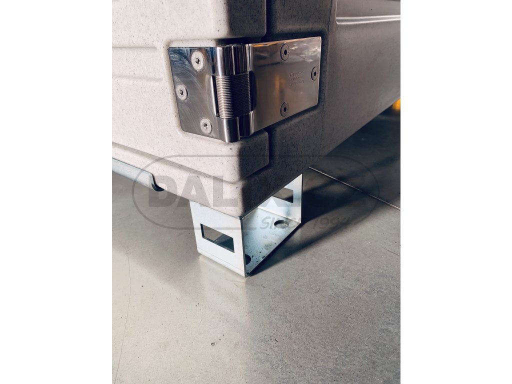 Boxy F0760 jsou standardně dodávány s plastovou závěsnou lamelovou clonou a paletovou základnou (kovové nožičky umožňující manipulaci vysokozdvižným vozíkem).
