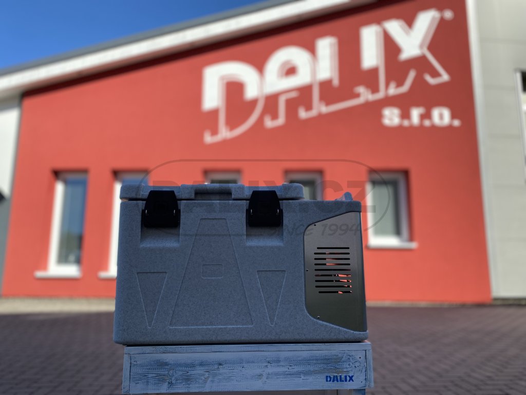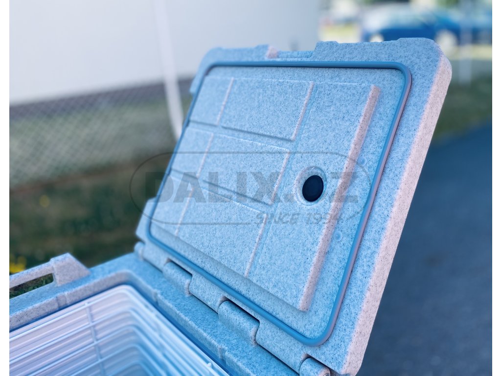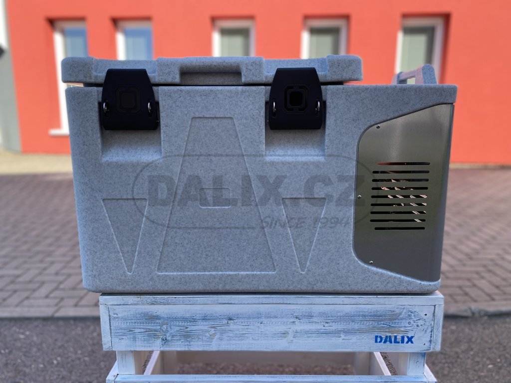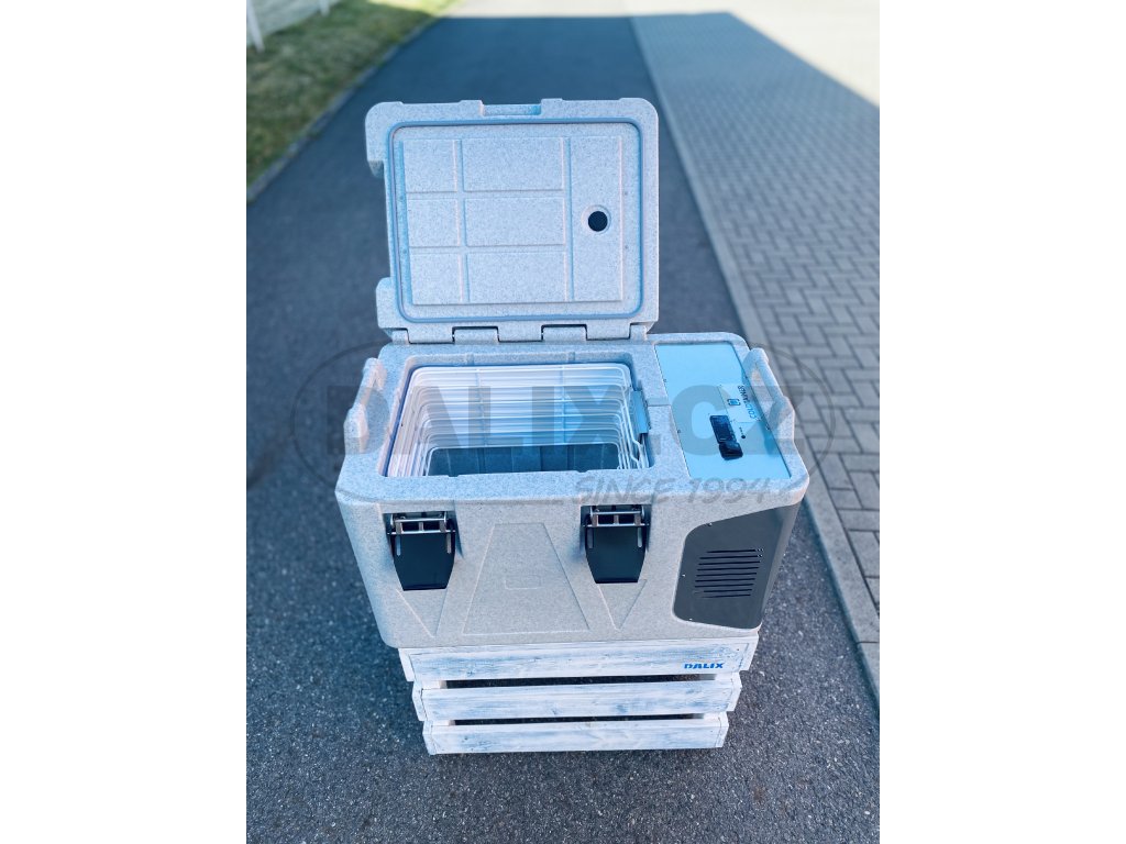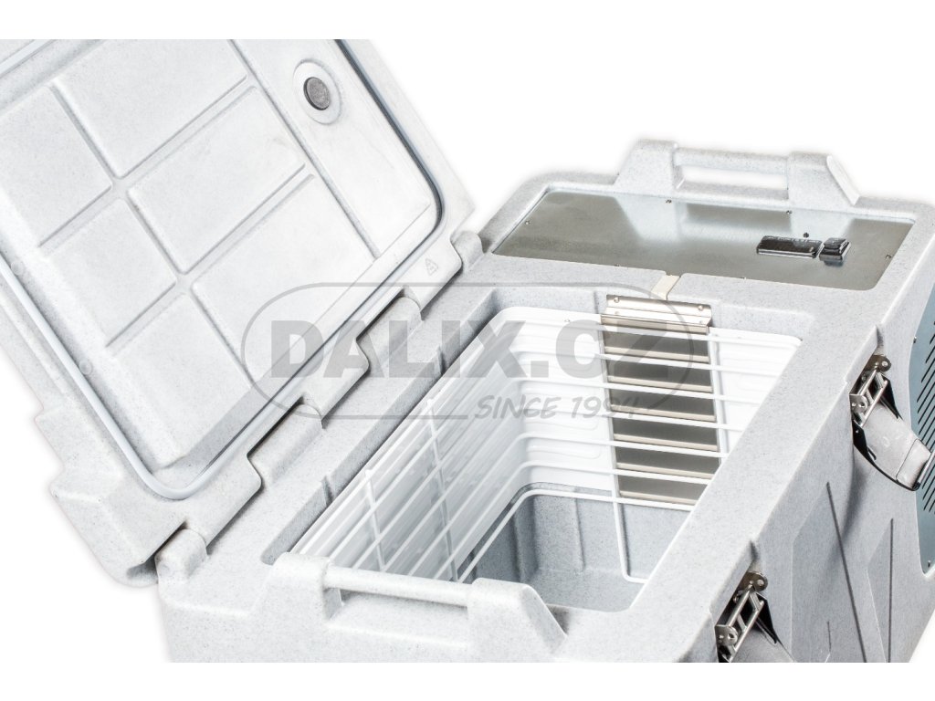 - Box je osazen hermeticky uzavřeným kompresorem Danfoss BD50F s integrovanou řídící jednotkou a ochranou baterie proti vybití. Digitálním termostatem lze variabilně nastavovat a sledovat teplotu uvnitř boxu. Box odpovídá standardům HACCP pro přepravu potravin.