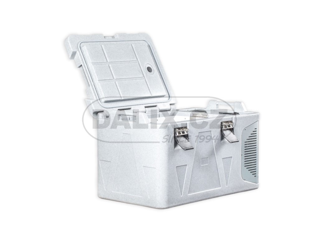 - Box je osazen hermeticky uzavřeným kompresorem Danfoss BD50F s integrovanou řídící jednotkou a ochranou baterie proti vybití. Digitálním termostatem lze variabilně nastavovat a sledovat teplotu uvnitř boxu. Box odpovídá standardům HACCP pro přepravu potravin.