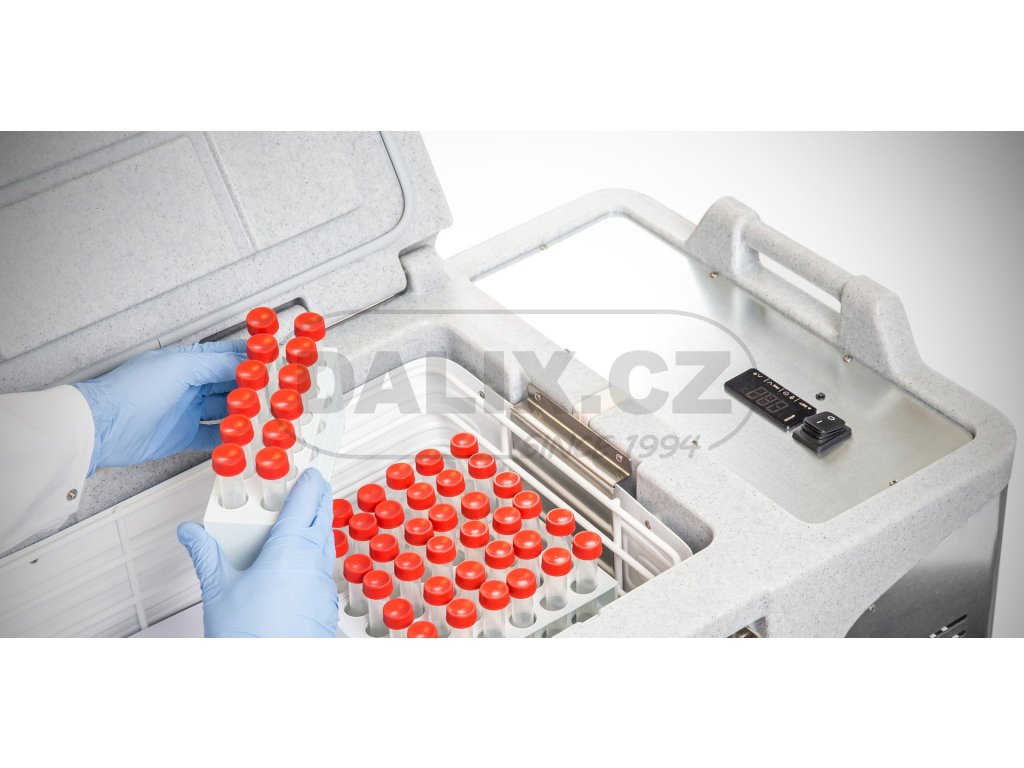 Přenosný kompresorový chladicí / mrazicí box s horním plněním, ideální pro profesionální přepravu vzorků nebo citlivých produktů, který má velice robustní konstrukci. Je vyroben z odstředivě odlévaného polyetylenu (PU) a PUR izolace. Povrch boxu je hladký, zaoblený a lehce udržovatelný. Díky možnosti seskupení řady Coldtainer mohou firmy mít v jednom vozidle řešení s více teplotami.
