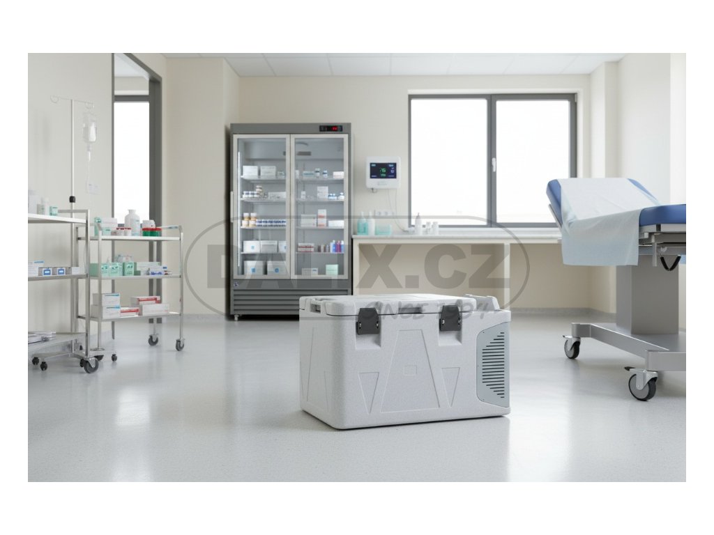 - Box je osazen hermeticky uzavřeným kompresorem Danfoss BD50F s integrovanou řídící jednotkou a ochranou baterie proti vybití. Digitálním termostatem lze variabilně nastavovat a sledovat teplotu uvnitř boxu. Box odpovídá standardům HACCP pro přepravu potravin.