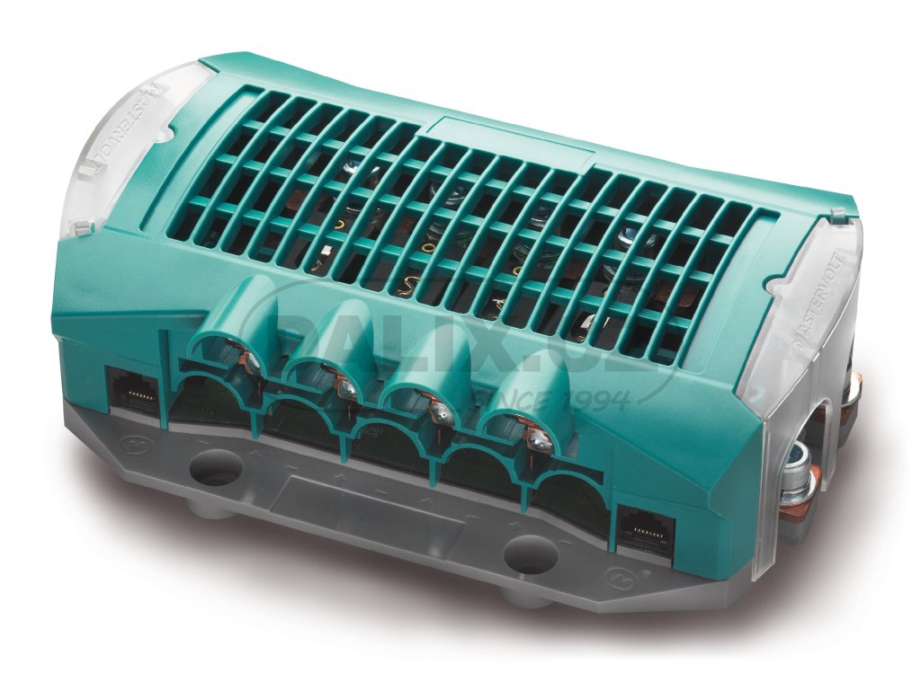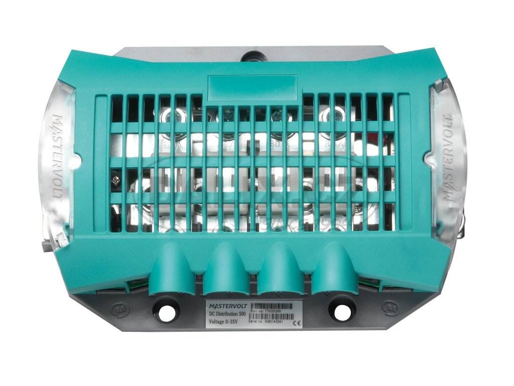 DC Distribution 500 je nejmenší dostupný model distribučního zařízení. Připojuje až čtyři stejnosměrná zařízení, jako je nabíječka baterií, střídač, alternátory a solární panely. Pomocí kabelu plug & play jej lze snadno připojit k síti MasterBus. Panel EasyView pojmenuje všechny pojistky logicky, například s odkazem na připojené zařízení, abyste dostávali srozumitelná chybová upozornění (například: vadná pojistka nabíječky baterií).