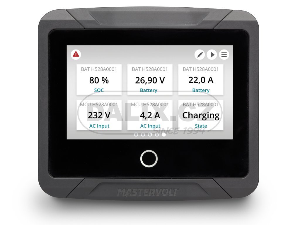 Barevný displej 4,3 palce má rozlišení 480 x 272 pixelů a umožňuje výborné prohlížení v plném denním světle.Jako všechny produkty MASTERVOLT, také EasyView 5 byl navržen pro provoz v drsném mořském nebo mobilním prostředí a byl navžen dle standardu IP67. Zařízení je utěsněno proti prachu, písku nebo sušené soli, a poskytuje solidní ochranu proti stříkající vodě.