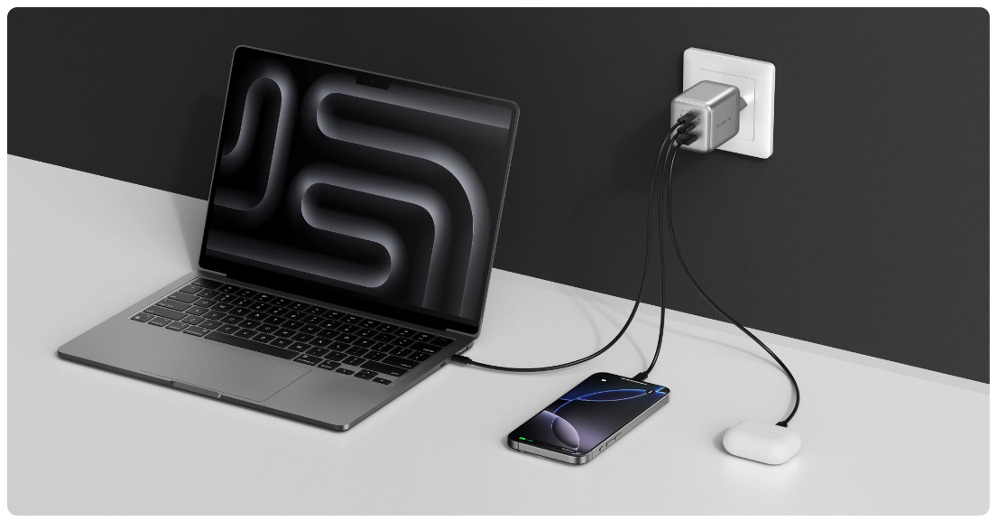 Při nabíjení více zařízení současně inteligentně upravuje výkon podle potřeb každého zařízení, čímž zajišťuje efektivní, stabilní a bezpečné nabíjení.