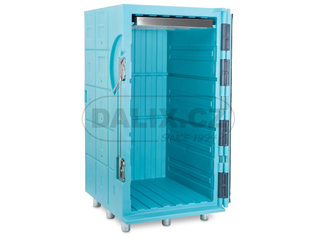 Robustní izolované kontejnery profesionální kvality, ideální pro přepravu chlazených nebo mražených potravin. Vhodné pro profesionály v potravinářství (catering, restaurace, lahůdkářství atd.), ale také pro distribuci léčiv. Chladicí či mrazicí účinek eutektických desek se plnohodnotně vyrovná aktivnímu chlazení. Velkou výhodou je jednoduchá instalace bez nutnosti napájení z vozidla. Boxy je možné, při přepravě ve vozidle, obestavět dalším zbožím, čímž se zvýší přepravní kapacita. Není požadován prostor na odvětrání v okolí kontejneru. Opláštění kontejneru je při mechanickém poškození velmi snadno opravitelné. Oproti aktivnímu chlazení výrazně nižší pořizovací a provozní náklady. Pro zajištění bezpečnosti se tento model dodává výhradně na ocelových paletových nožičkách o Ø 80mm. (9ks)