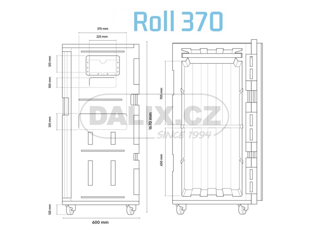 Tyrkysové izolované kontejnery ROLL jsou vyráběny s použitím nejnovějších technologií rotačního tvarování, která umožňuje tvarování dvojstěnného tělesa (obalu boxu) a dveří "v jednom kroku". Po fázi tvarování se izolační surovina, nejnovější generace expandované polyuretanové pěny, vstříkne do dvojité stěny. Jednolitý design poskytuje izolovaným kontejnerům ROLL výborné izotermické vlastnosti a delší životnost izolační suroviny. Vzhledem k tomu, že polyuretanová pěna je zapouzdřena uvnitř zcela utěsněné dvojité plastové stěny, izolační materiál si zachovává svou celistvost a kvalitu po mnoho let.Roll je mobilní chladicí izolovaný kontejner, obecně vybavený kolečky (od modelu Roll 220). Přední otevírání dveří umožňuje vizuální kontrolu a přístup k celému nákladovému prostoru. Vnitřní část kontejneru může být vybavena mřížkovými policemi pro umístění potravin bez rizika jejich poškození. Izolované kontejnery řady Roll jsou široce používány k distribuci potravin do prodejen nebo různých prodejních míst z distribučních center.