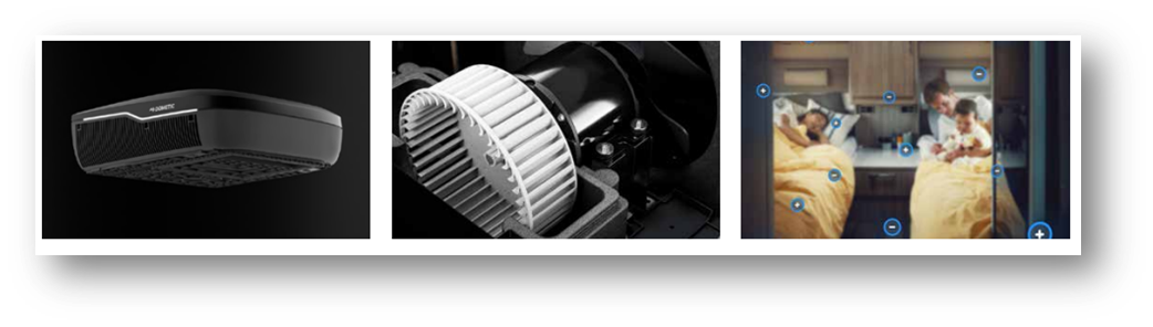 Standardní stropní kryt, s elegantním vzhledem pro distribuci vzduchu, lze použít u všech nových modelů klimatizací Dometic FreshJet FJZ (mimo FJZ4 1500M). Kryt rozvádí vzduch po vozidle pomocí nastavitelných výdechů do dvou směrů, dopředu a dozadu. Výsledkem je mírné a příjemné proudění vzduchu. Kryt obsahuje teplé bíle LED diody, které vyzařují příjemné měkké světlo, pro osvětlení vozu, které lze ovládat pomocí dálkového ovládání nebo nastavením na displeji. Součástí krytu je také čistička vzduchu CleanAir, díky které bude vozidlo čisté a svěží.