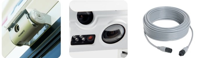 Barevná duální kamera Dometic PerfectView CAM 44 s clonou je vybavena dvěma objektivy a motorizovaným krytem, který je chrání před nečistotami. Barevná kamera s integrovaným mikrofonem je umístěna v hliníkovém pouzdře a přenáší obraz i zvuk na monitor pomocí kabelu. Kameru lze ovládat ručně nebo automaticky. CAM 44 má detailní objektiv pro oblast přímo za vozidlem a objektiv s dlouhým dosahem pro přesnější manévrování vozidla. Při couvání kamera vytváří tři značky vzdálenosti, které se zobrazují jako barevné čáry na připojeném barevném monitoru. Infračervené LED diody reagují na okolní světlo a zajišťují lepší noční vidění.
