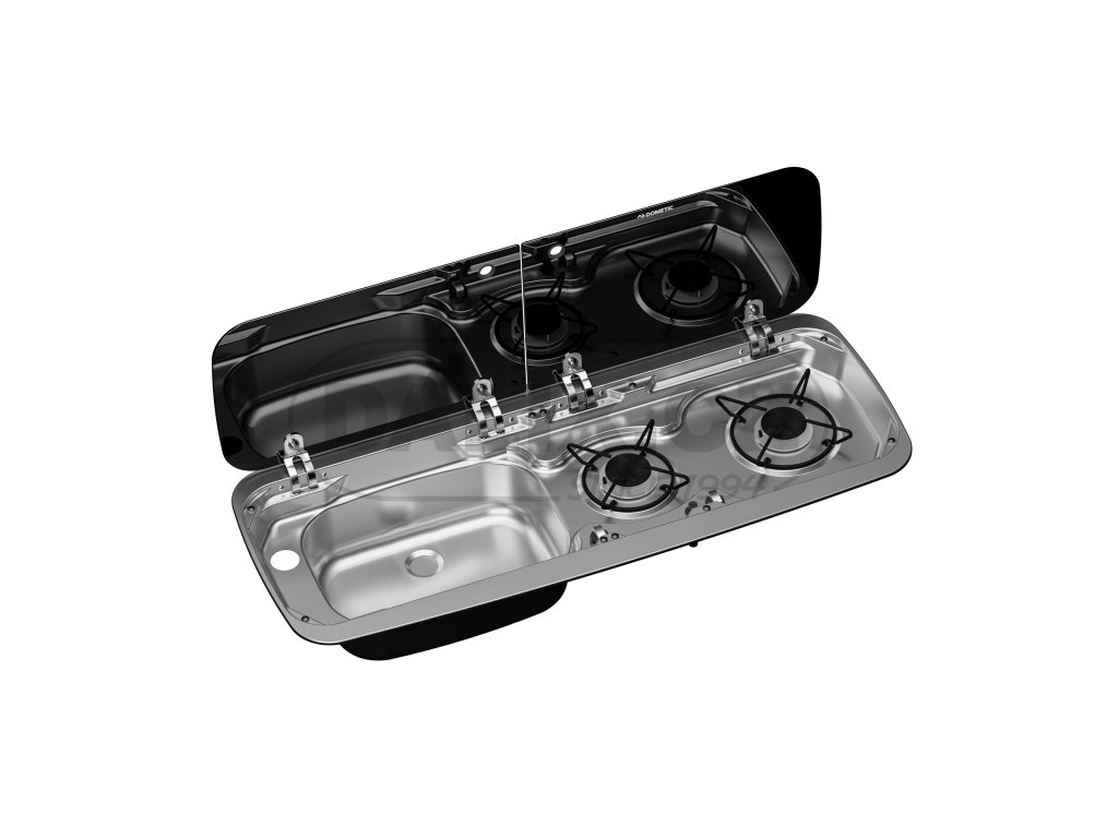 Kompaktní model Dometic HSG 2370 L je praktickou kombinací plynového vařiče se dvěma hořáky a dřezem. Praktická kombinace určená do malých prostor pro obytná vozidla a karavany, do kuchyně obytných automobilů, dodávek nebo přívěsů a pro lodní kuchyně. Dřez je umístěn vlevo od plynových hořáků. Skleněný kryt z tepelně odolného bezpečnostního skla se skládá ze 2 částí. Po zavření slouží jako pracovní plocha.