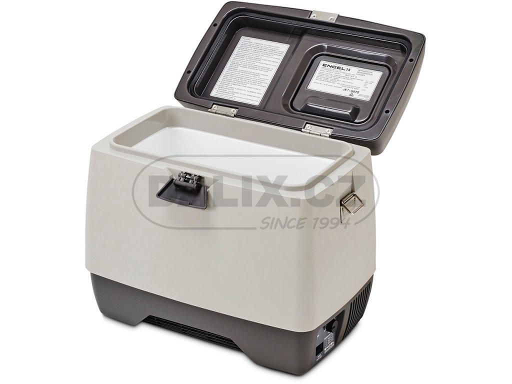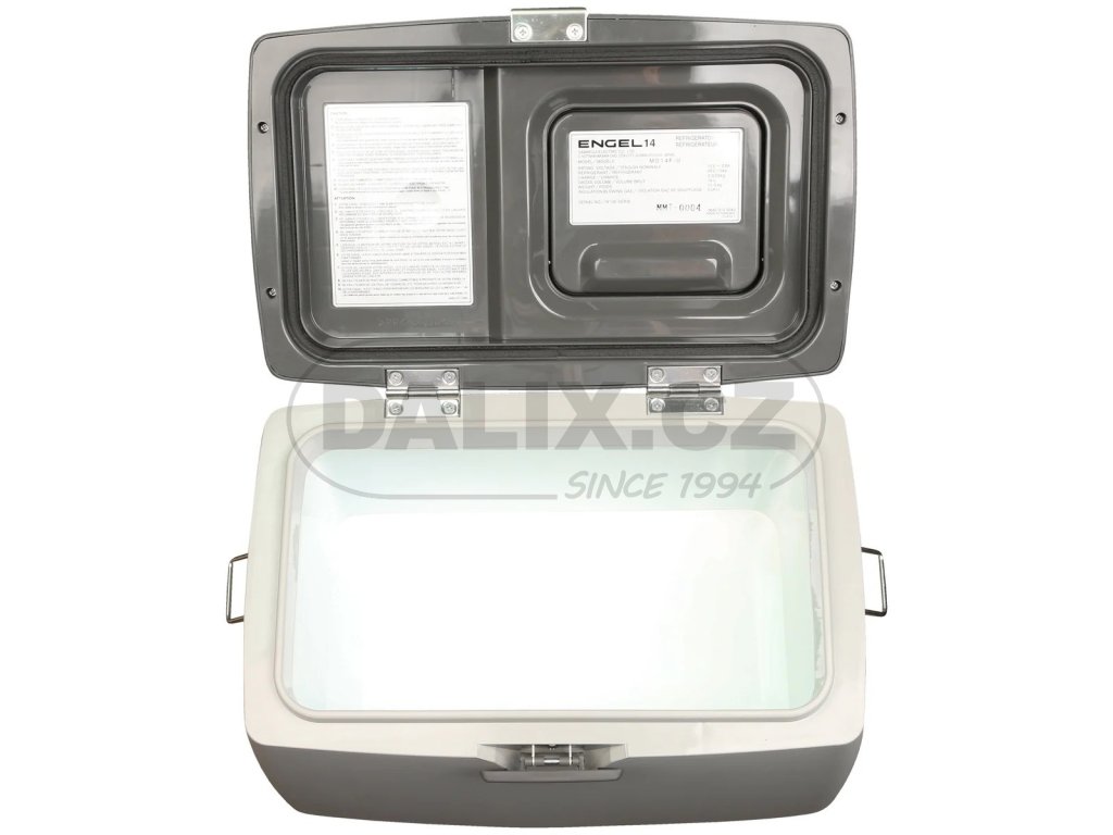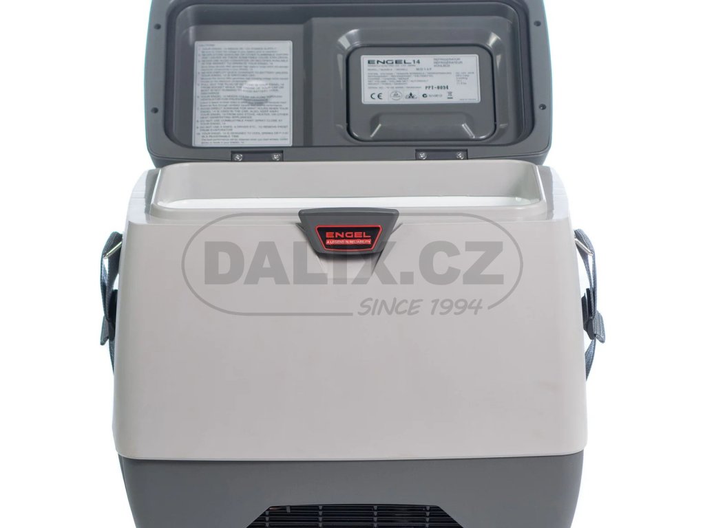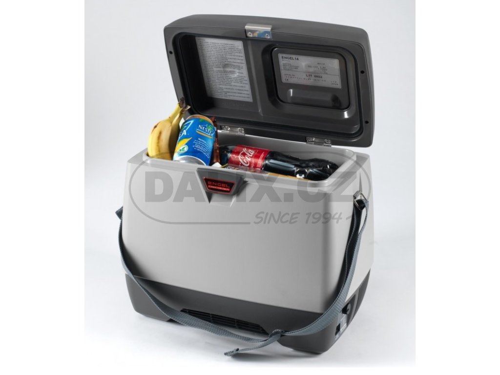 Kompresorová autolednička / automraznička ENGEL MD14F (little ENGEL) má novou generaci hermeticky uzavřeného Swingkompresoru Sawafuji s integrovanou řídící jednotkou, která zajišťuje plynulý rozběh kompresoru bez startovacích špiček a rázů. Nezávislost kompresoru na poloze - plný výkon lednice až do náklonu 60 stupňů. Velmi malá kompresorová autolednička, s uložením kompresoru ve vodorovné poloze, umožňuje maximální využití obestavěného prostoru. Lednice je vybavena vyvýšeným víkem s malými dvířky ve víku, eliminující tepelné ztráty při vkládání či kontrole vloženého zboží. Lednice je standardně vybavena popruhem pro jednoduchou manipulaci. Plynulé nastavení teploty je zabezpečeno otočným termostatem.