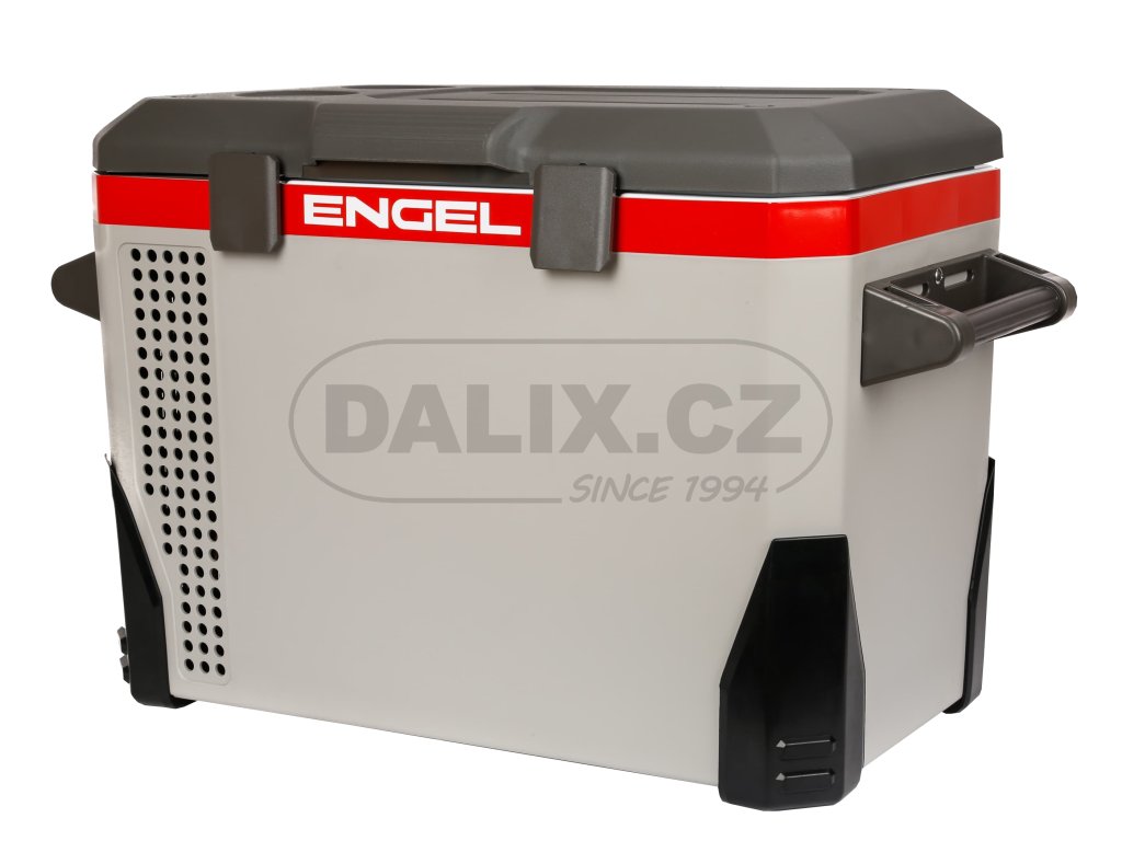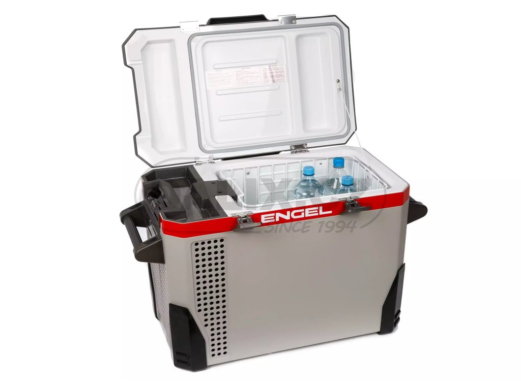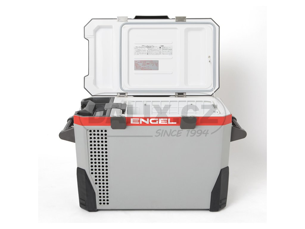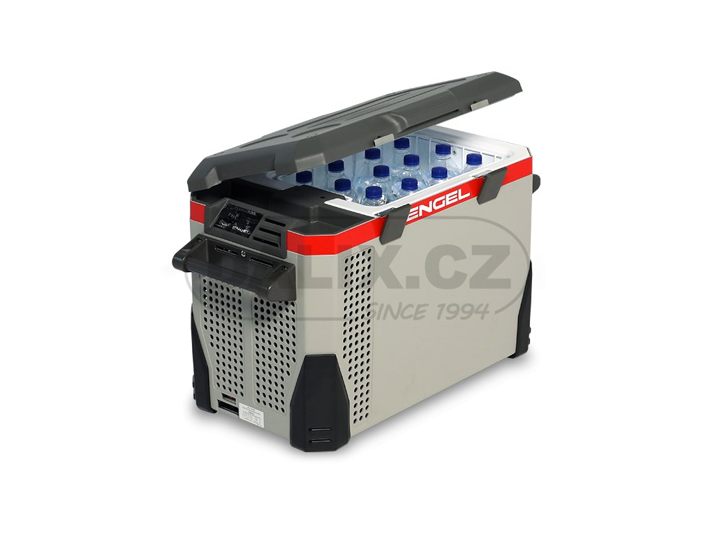 Kompresorová autolednička/automraznička ENGEL MR040 má hermeticky uzavřený Swing kompresor Sawafuji s integrovanou řídící jednotkou, která zajišťuje plynulý rozběh kompresoru bez startovacích špiček a rázů. Nezávislost kompresoru na poloze - plný výkon lednice až do náklonu 60 stupňů. Lednice má plynulou regulaci teploty otočným termostatem. Výparník je uložen po celém vnitřním obvodu lednice a není integrován do boxu. Lednice je vybavena madly pro snadnou manipulaci a oproti řadě MT je obal vyroben z odolného polypropylenu. Součástí dodávky jsou dva kabely na připojení ve vozidle s palubním napětím 12V nebo 24V a k hlavnímu síťovému napětí 230V. Uzávěr a panty jsou nerezové. Otevírání víka lze otočit o 180°. Do boxu lze vložit dvoulitrové láhve nastojato. Odolnost proti mechanickému poškození zvyšují robustní rohy s pryžovými prvky.
