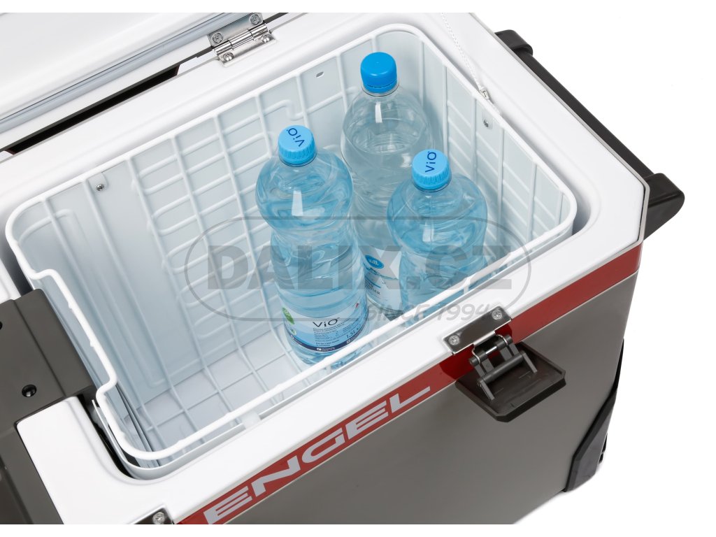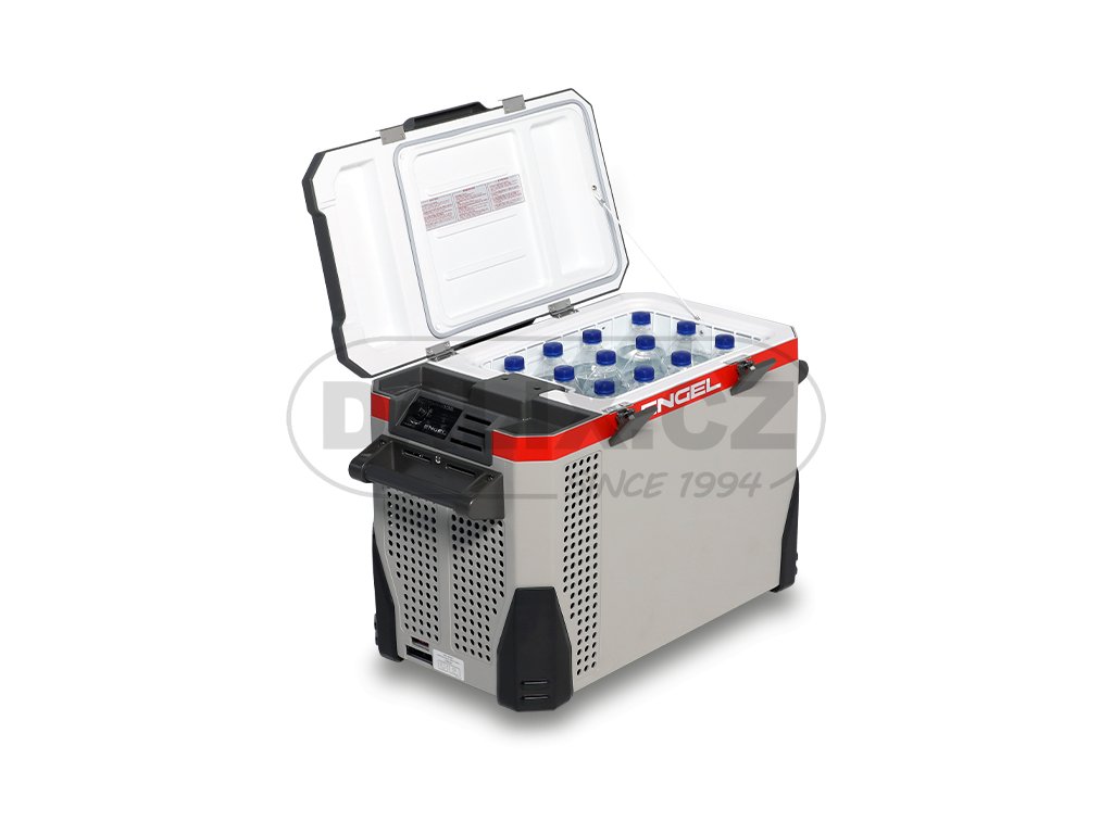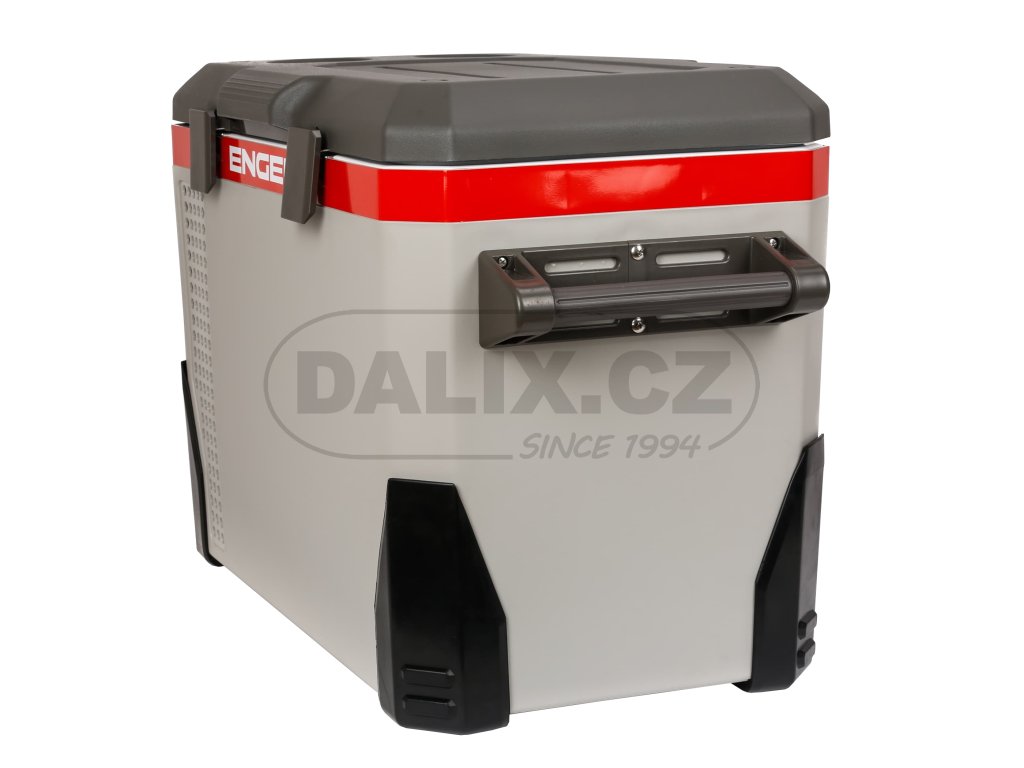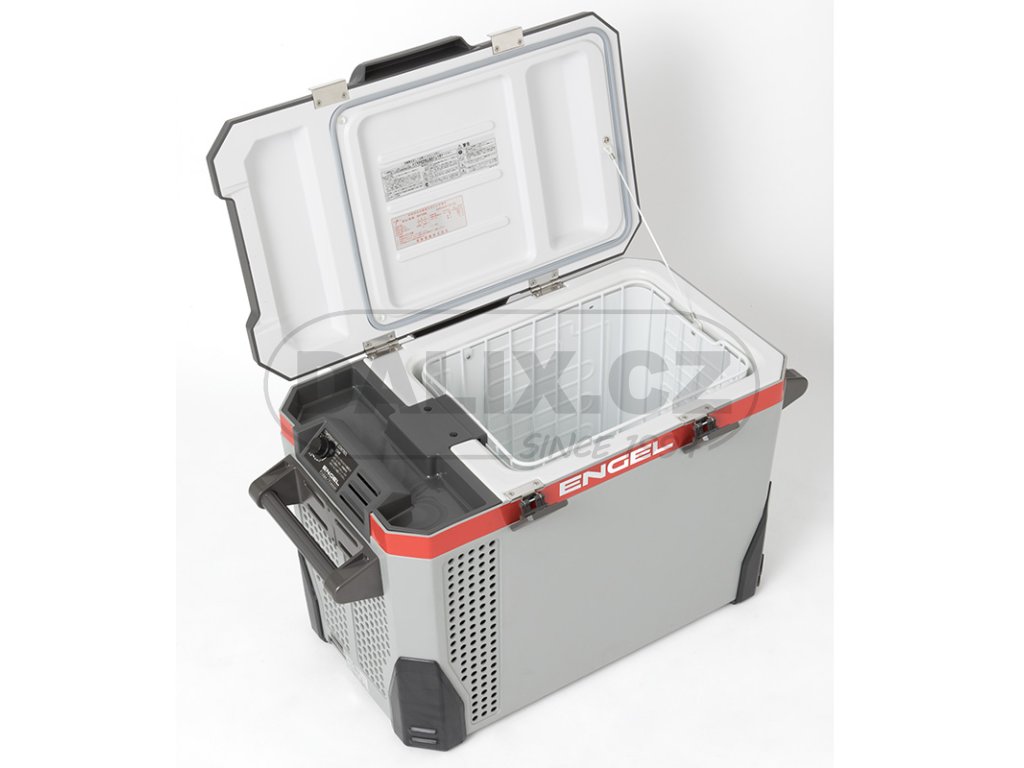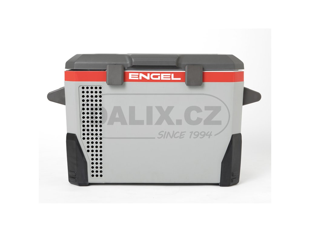 Kompresorová autolednička/automraznička ENGEL MR040 má hermeticky uzavřený Swing kompresor Sawafuji s integrovanou řídící jednotkou, která zajišťuje plynulý rozběh kompresoru bez startovacích špiček a rázů. Nezávislost kompresoru na poloze - plný výkon lednice až do náklonu 60 stupňů. Lednice má plynulou regulaci teploty otočným termostatem. Výparník je uložen po celém vnitřním obvodu lednice a není integrován do boxu. Lednice je vybavena madly pro snadnou manipulaci a oproti řadě MT je obal vyroben z odolného polypropylenu. Součástí dodávky jsou dva kabely na připojení ve vozidle s palubním napětím 12V nebo 24V a k hlavnímu síťovému napětí 230V. Uzávěr a panty jsou nerezové. Otevírání víka lze otočit o 180°. Do boxu lze vložit dvoulitrové láhve nastojato. Odolnost proti mechanickému poškození zvyšují robustní rohy s pryžovými prvky.