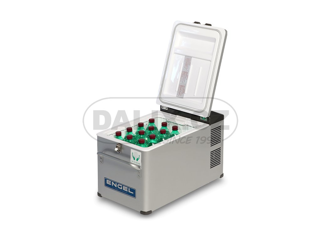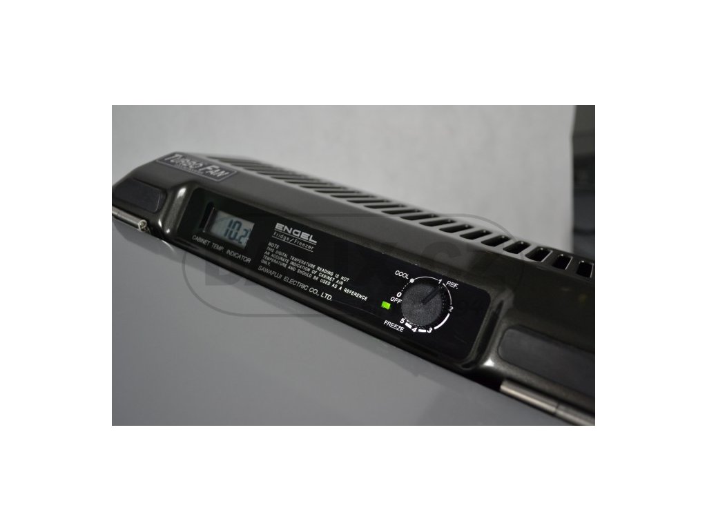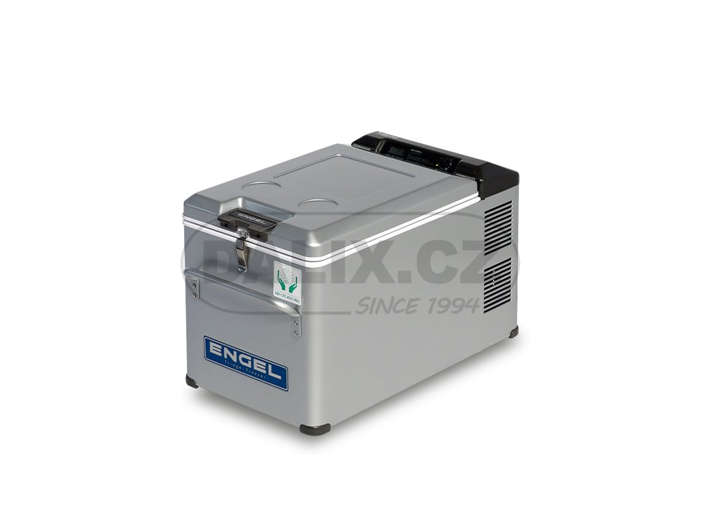 Kompresorová autolednička / automraznička ENGEL MT35F-S má hermeticky uzavřený Swingkompresor Sawafuji s integrovanou řídící jednotkou, která zajišťuje plynulý rozběh kompresoru bez startovacích špiček a rázů. Nezávislost kompresoru na poloze - plný výkon lednice až do náklonu 60 stupňů. Lednice má plynulou regulaci teploty otočným termostatem. Výparník je uložen po celém vnitřním obvodu lednice a není integrován do boxu. Lednice je vybavena drátěným košem, šroubovatelnými madly a dvěma kabely na připojení ve vozidle s palubním napětím 12V nebo 24V a k hlavnímu síťovému napětí 230V. Uzávěr a panty jsou kovové. Do boxu lze vložit dvoulitrové láhve naležato. Víko lze vysunutím do boku jednoduše odejmout. Na ovládacím panelu zabudovaný velmi přesný digitální teploměr.