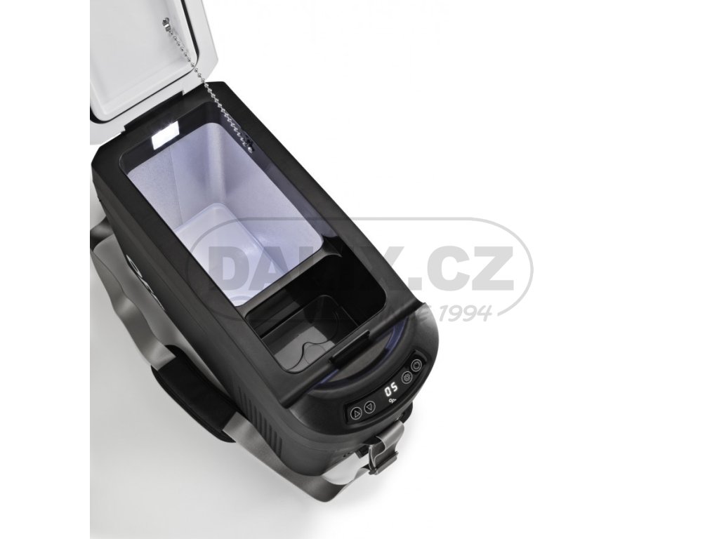 Autochladničku lze umístit i na sedadlo spolujezdce, je vybavena pro upevnění bezpečnostního pásu. Vnitřní prostor je osvětlen LED diodami ovládanými elektromagnetickým spínačem, který je aktivován otevřením víka.