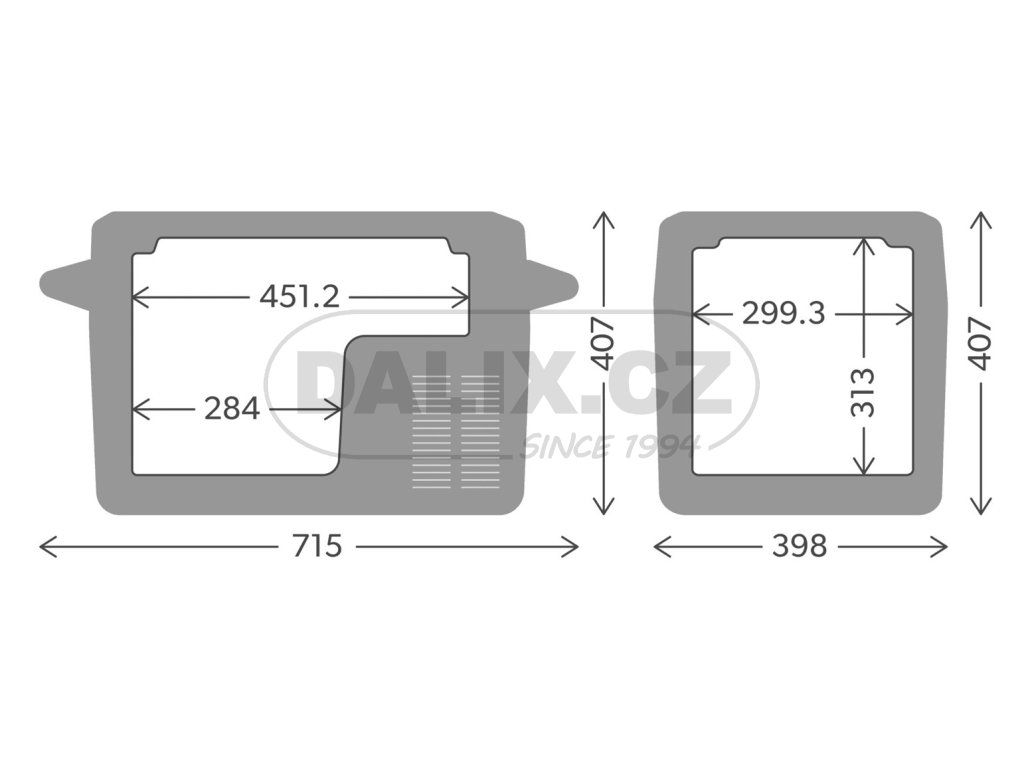 | Vnější rozměry v/š/h: | 407/ 398/ 590 mm (715 mm s madly) |