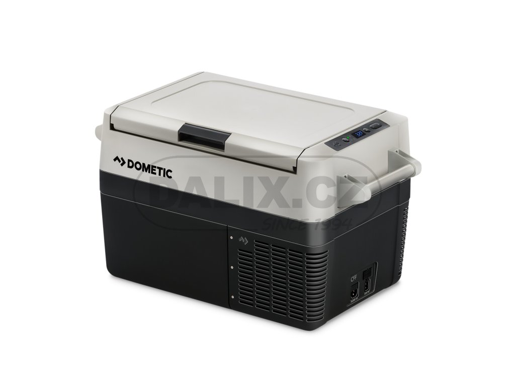 Kompresorová autochladnička DOMETIC CFF35 s teplotním rozsahem +20°C až -18°C (při okolní teplotě +16°C až +32°C) a vnitřním objemem 34 litrů. Chladničku lze provozovat ve vozidle na 12/24V DC nebo ze sítě 100-240V AC.