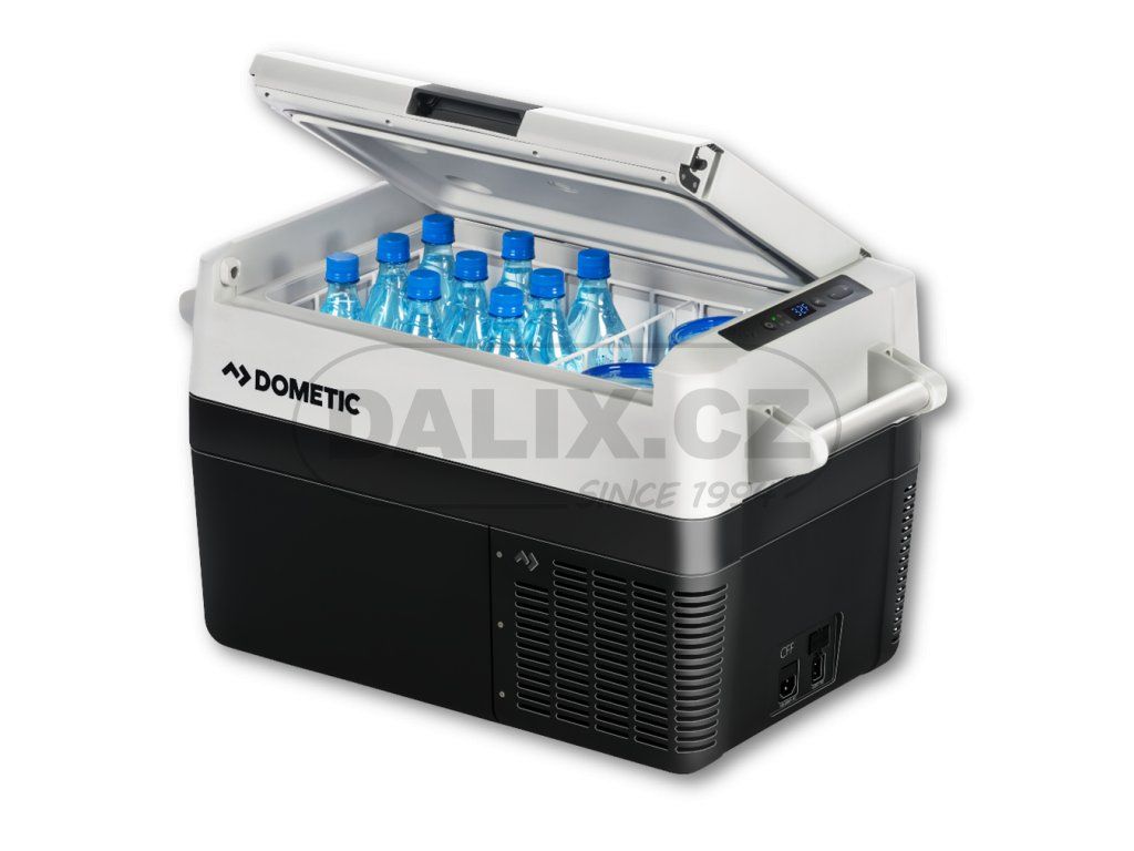 Dometic CFF 35 je všestranný přenosný chladící box, který je příjemný pro uživatele, robustní a snadno se přenáší. Dodává se s digitálním elektronickým ovládacím systémem a dokáže vychladit ilednici v rozsahu +20 °C až -18 °C (při okolní teplotě +16°C až +32°C). Řada CFF byla navržena tak, aby efektivněji využívala skladovací prostor a distribuci teploty, zatímco robustní izolace pomáhá optimalizovat chladící výkon a energetickou účinnost. Chladničku lze provozovat ve vozidle na 12/24V DC nebo ze sítě 100-240V AC. Univerzální autolednice Dometic se stylovým designem, víkem s dvojitým dorazem. Autolednice CFF 35 s hmotností do 18 kg a navýšeným objemem na 34 l – výsledkem je jeden z nejúspornějších přenosných chladících boxů Dometic. Umístění vnitřního úložného prostoru je předností designu Dometic CFF 35, výsledkem čehož je rovnoměrnější distribuce teploty v lednici. Inovativní oboustranný otevírací poklop umožňuje pohodlný přístup z obou stran, což je ideální pro použití ve stísněných prostorách obytného vozidla nebo lodi.