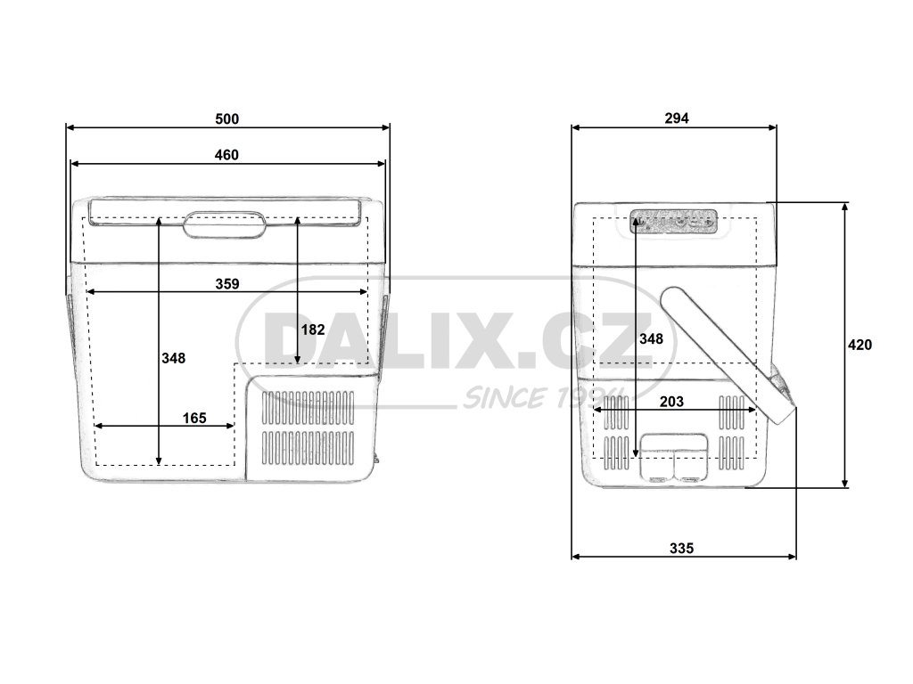 | Vnější rozměry v/š/h: | 425/470 bez madla (500 s madlem)/300 mm |