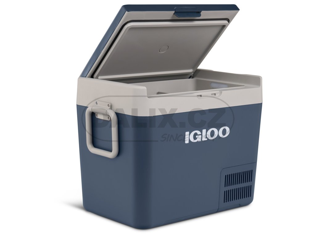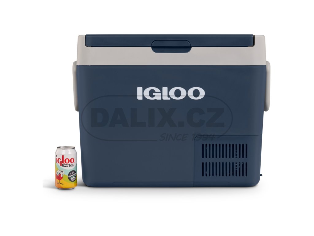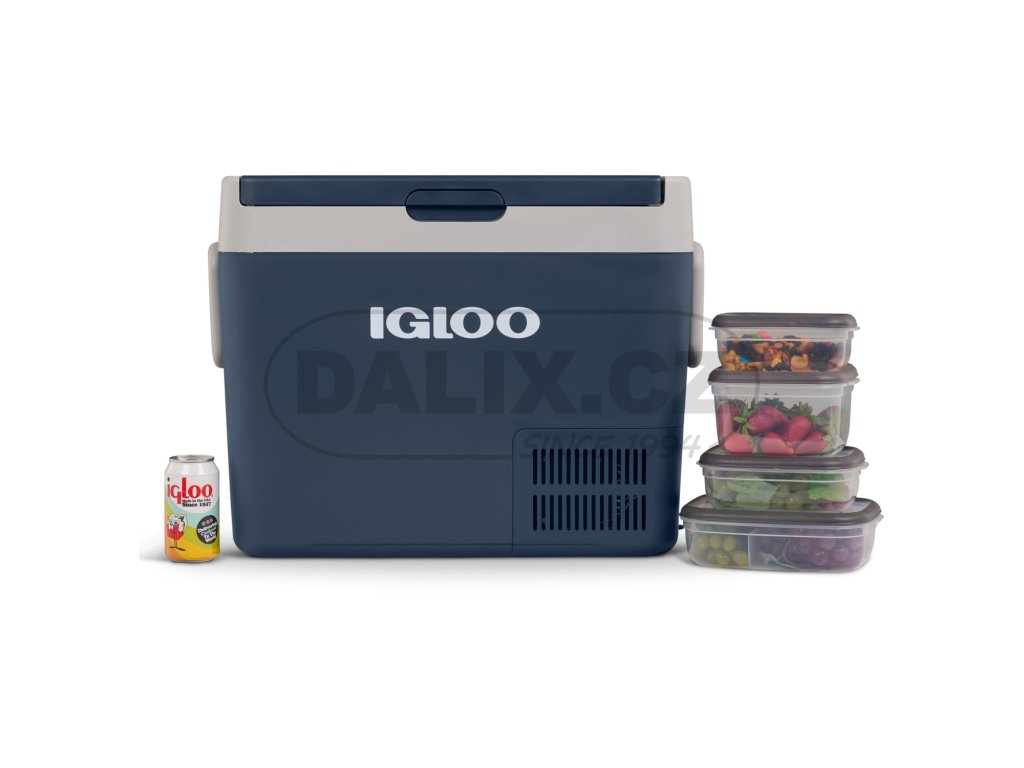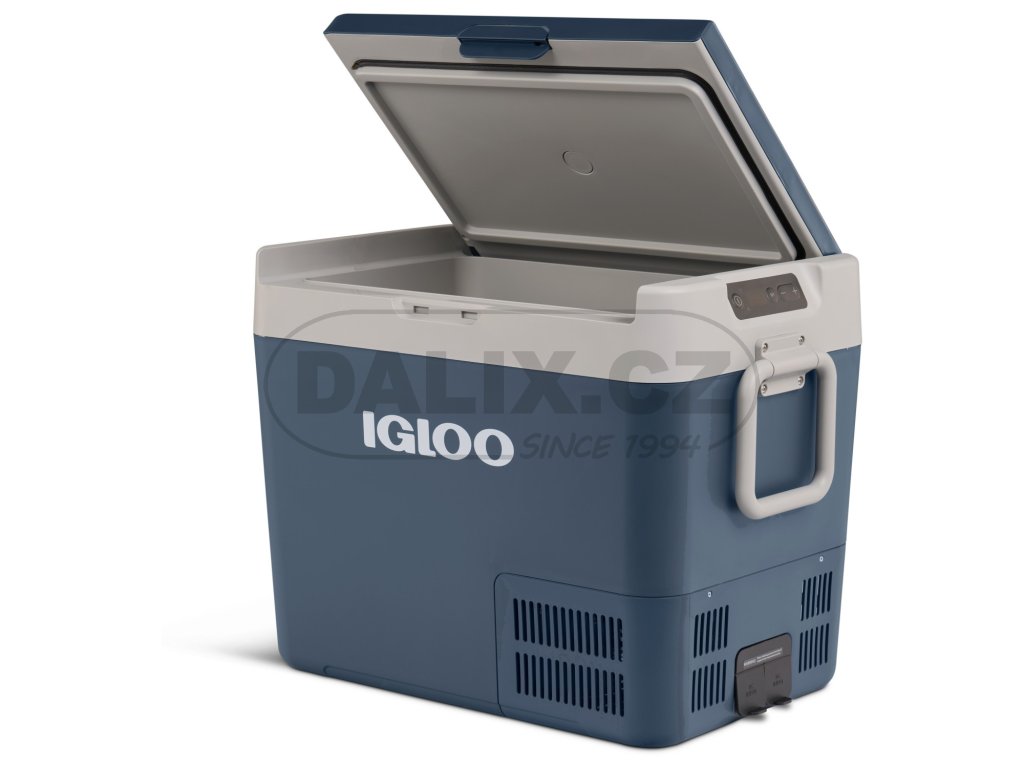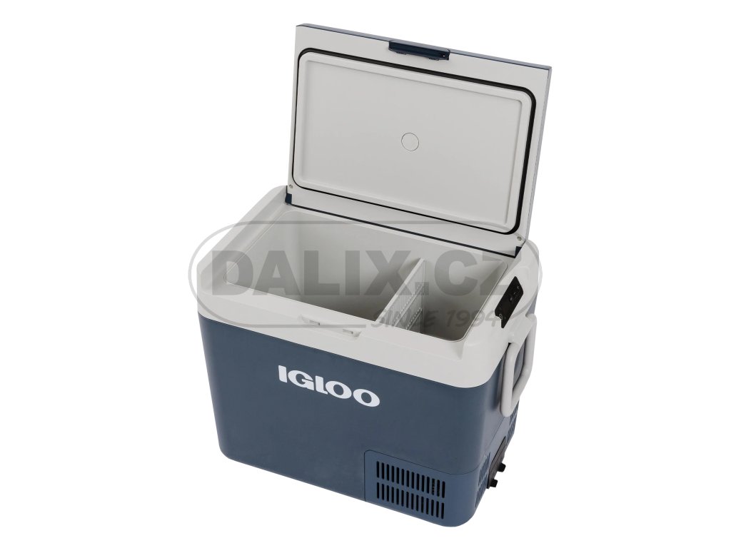 Novinkou z produkce IGLOO USA je chladicí popř. mrazicí box IGLOO ICF40 o objemu 39 litrů. Box je konstruován k provozu v zásuvce na stejnosměrný proud v automobilu 12 nebo 24V, na lodi, v obytném automobilu, nebo zásuvce na střídavý proud 110-240 V (hlavní síť). Kompresorová autolednička/automraznička IGLOO ICF 40 umožňuje chladit potraviny, udržovat je chladné a také je zamrazit. Chlazení je zajištěno bezúdržbovým chladicím okruhem s hermeticky uzavřeným kompresorem a integrovanou řídící jednotkou. Autolednička je vybavena ochranou baterie proti vybití se třemi úrovněmi nastavení, jednotlivé funkce lze nastavit pomocí membránového ovladače s LED indikací. Autolednička má ucelený vnitřní prostor osazený po obvodě výparníkem pro dosažení velmi rychlého chladicího účinku, dále je vybavena vnitřním osvětlením. Výklopné madlo zajišťují jednoduchou a příjemnou manipulací s autochladničkou.