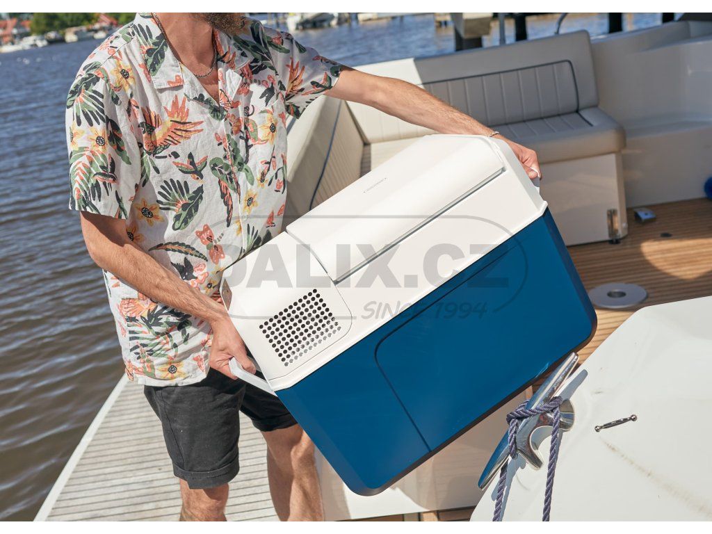 Nejprodávanejší chladicí popř. mrazicí box řady MOBICOOL. MFC32 box o objemu 31 litrů je konstruován k provozu v zásuvce na stejnosměrný proud v automobilu 12 nebo 24V, lodi nebo obytném automobilu, nebo zásuvce na střídavý proud 100-240 V (hlavní síť). Základem každé kompresorové autochladničky je spolehlivý kompresor. U tohoto modelu je použit stejný typ kompresoru jako u originálních autolednic vozidel VOLVO, SCANIA, MERCEDES BENZ nebo koncernu VW. Kompresorová autolednička/automraznička Mobicool MCF32 umožňuje chladit potraviny, udržovat je chladné a také je zamrazit. Chlazení je zajištěno bezúdržbovým chladicím okruhem s hermeticky uzavřeným kompresorem a integrovanou řídící jednotkou. Autolednička je vybavena ochranou baterie proti vybití se třemi úrovněmi nastavení, jednotlivé funkce lze nastavit pomocí membránového ovladače s LED indikací. Autolednička má ucelený vnitřní prostor osazený po obvodě výparníkem pro dosažení velmi rychlého chladicího účinku, dále je vybavena vnitřním osvětlením. Výklopná madla zajišťují jednoduchou a příjemnou manipulací s autochladničkou. Autolednička k mobilnímu použití je ideální pro běžnou dovolenou a může být provozována až do náklonu 30°, např. na lodích.