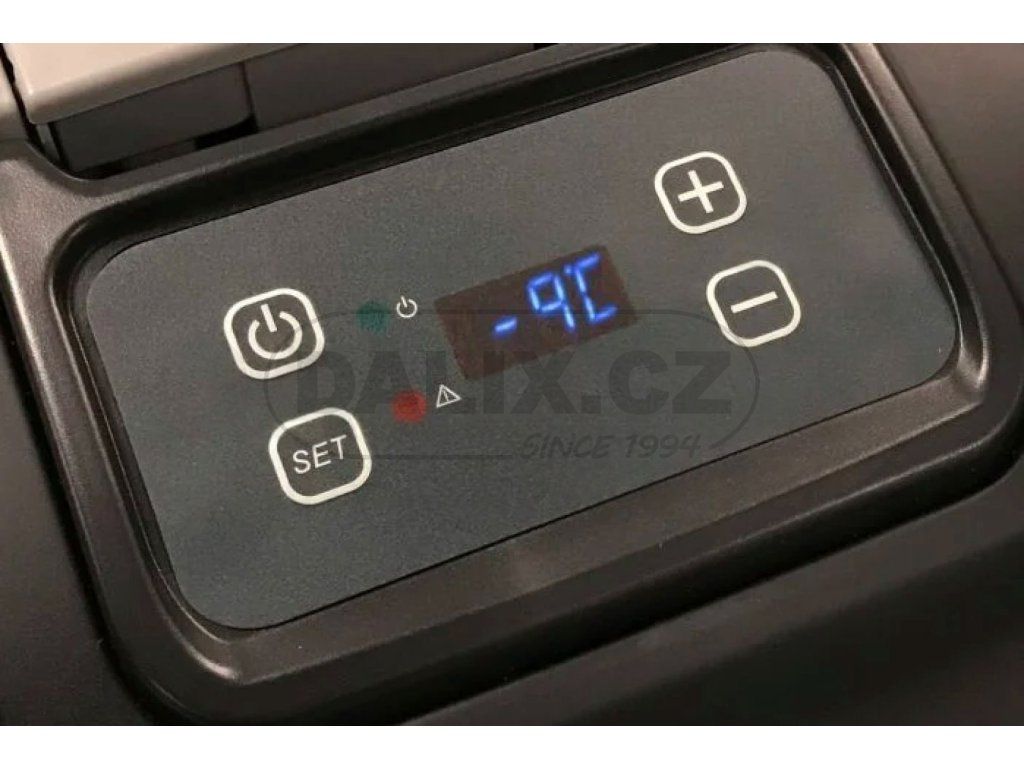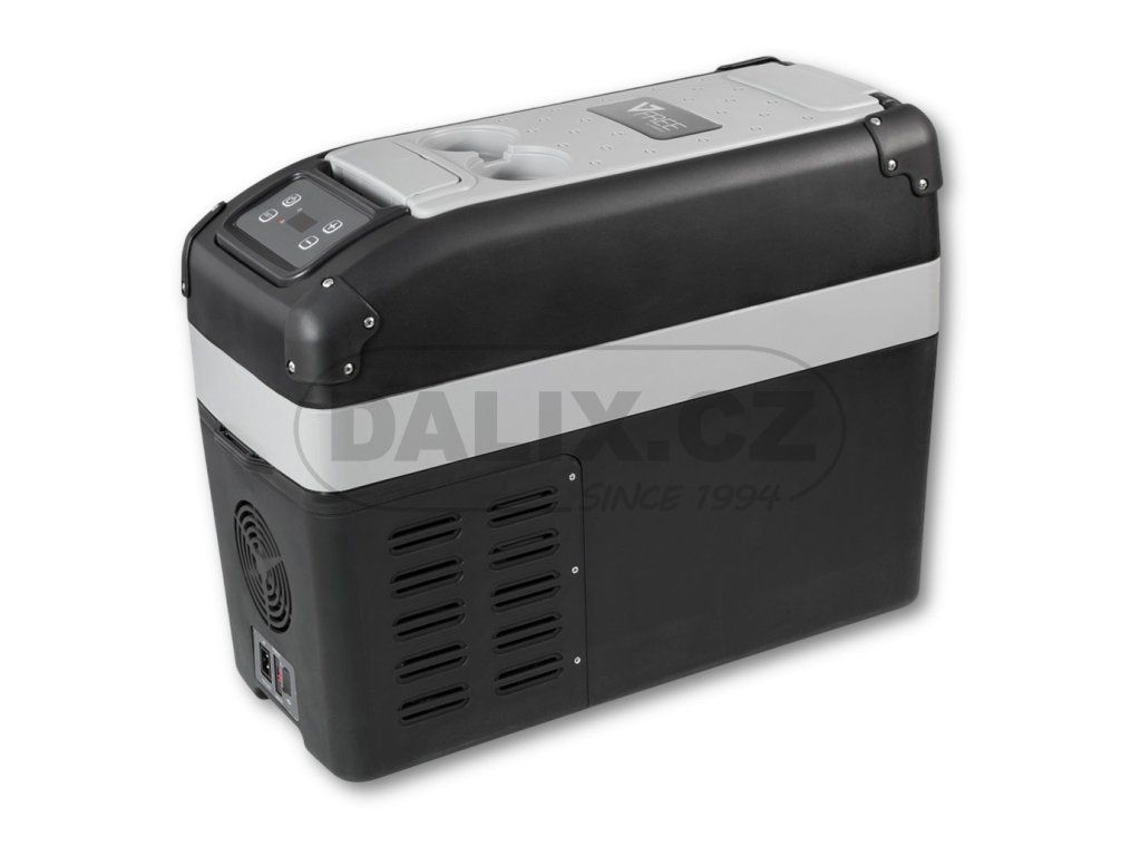 Kompresorová autochladnička / automraznička VITRIFRIGO VF16P je vybavena hermeticky uzavřeným kompresorem s integrovanou řídící jednotkou, ochranou baterie proti vybití a elektronickou ochranou proti přepólování a je určena pro napájení z 12/24V DC a 230V AC externím adaptérem, který je součástí dodávky. Vestavěná ochrana proti vybití autobaterie se dá nastavit ve třech úrovních HI/MED/LO. V případě poruchy elektroniky je lednice vybavena přepínačem Emergency system, který zajistí chlazení bez použití termostatu. Šířkou pouhých 24 cm patří k nejužší kompresorové autolednici na trhu.