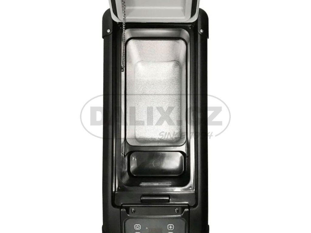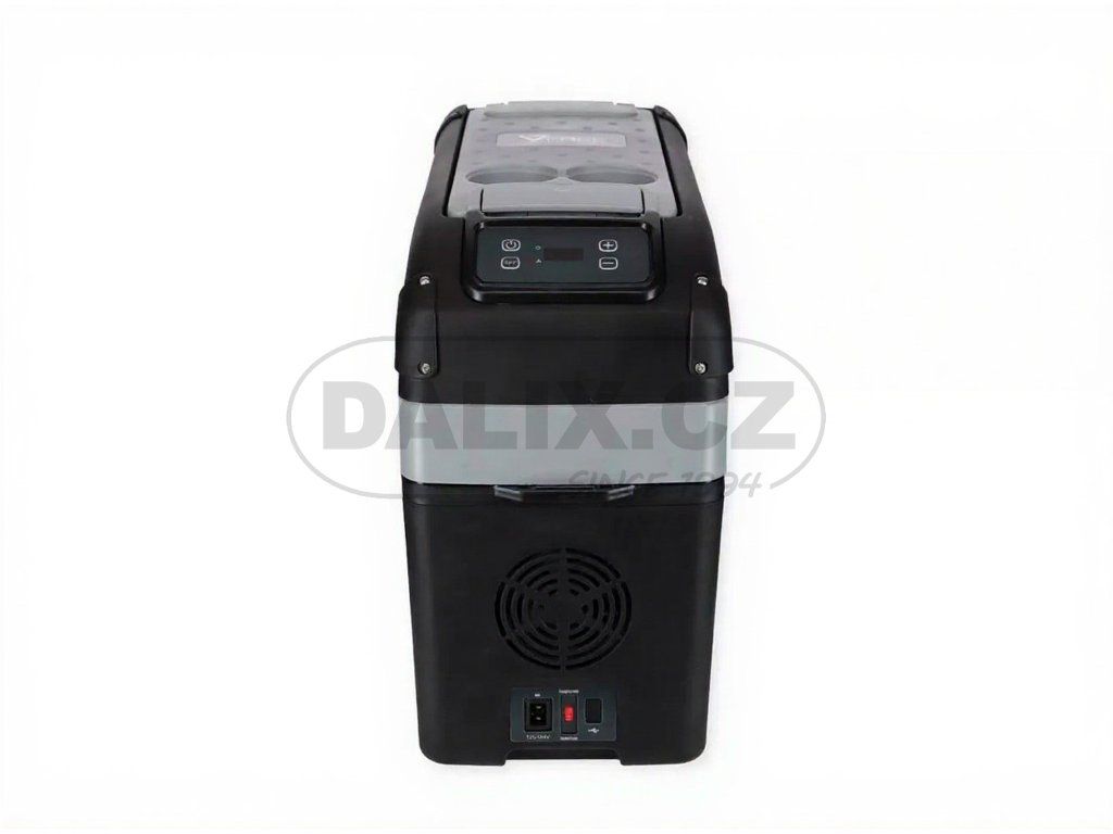 % ( přihrádka pouze na chlazení) a je vybaven LED osvětlením. Do autochladničky lze výškově postavit 1,5 litrovou láhev. Komfort autoledničky je doplněn odkládací přihrádkou ve víku na dva nápoje a USB portem k nabíjení mobilních telefonů a mp3 přehrávačů, popř. jiných malých spotřebičů kompatibilních s 5V/500mA.