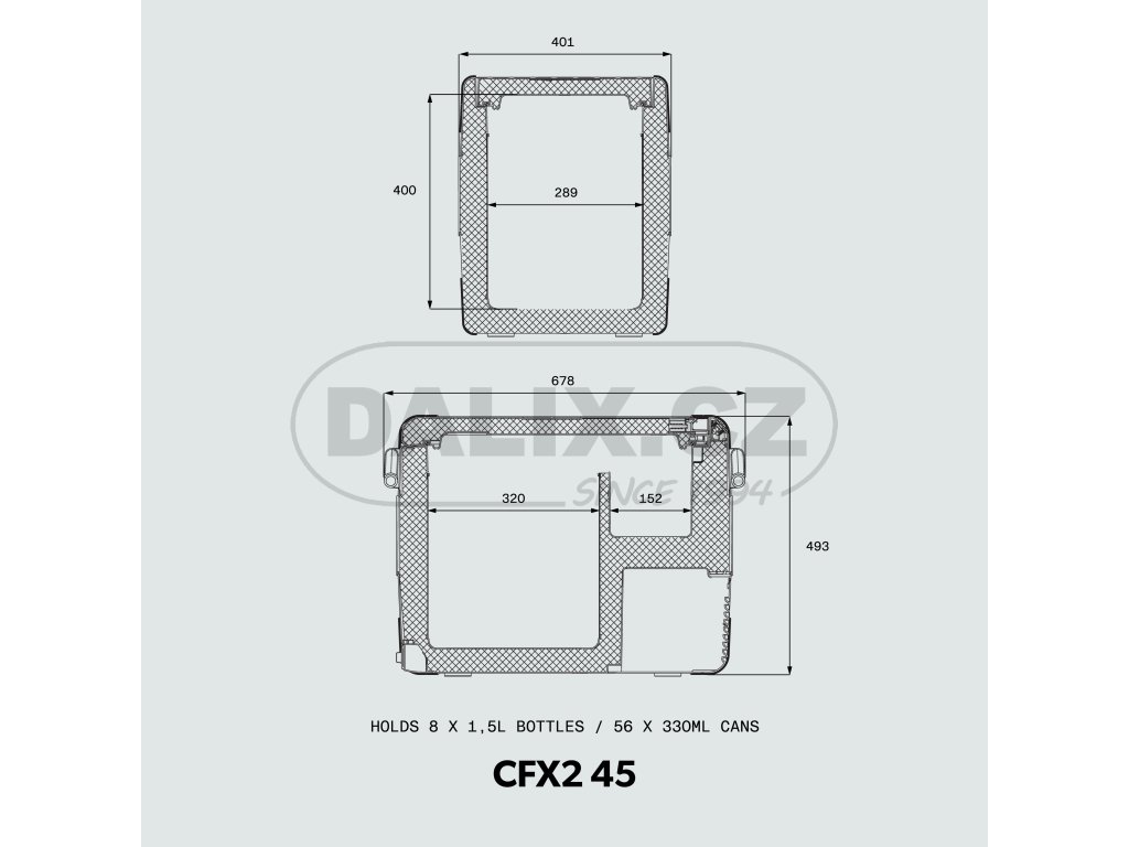 | + pojme 8 x 1,5l lahve nebo 56 x 330 ml plechovek | |