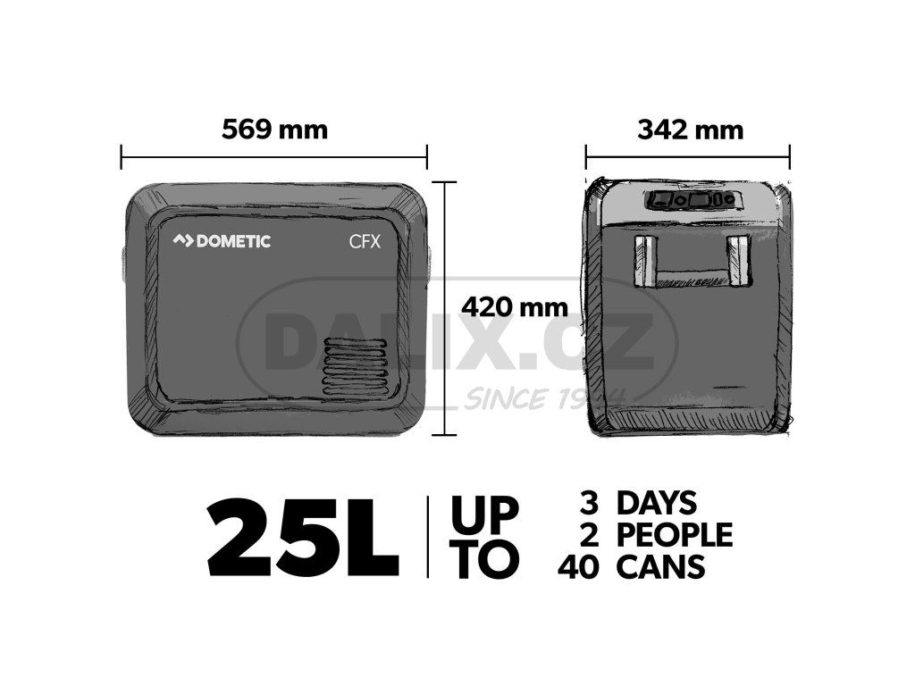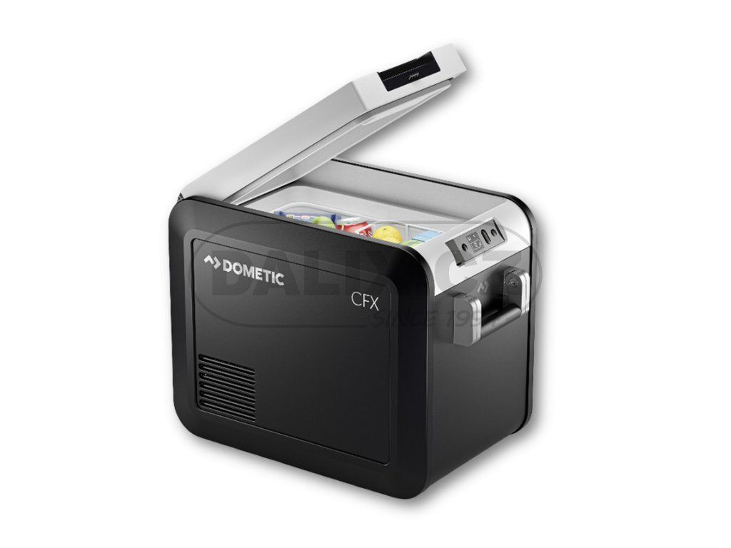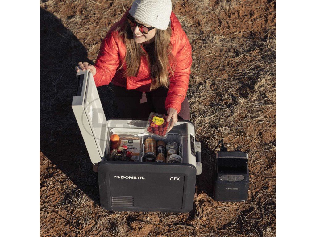 Kompresorová autochladnička DOMETIC CFX3 25 s teplotním rozsahem +10°C až -22°C (při okolní teplotě +16°C až +32°C) a vnitřním objemem 23 litrů. Chladničku lze provozovat ve vozidle na 12/24V DC nebo ze sítě 100-240V AC.