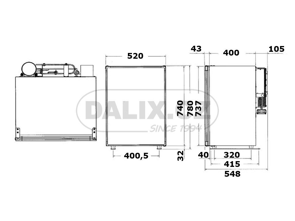 | Vnější rozměry v/š/h: | 781 / 520 / 548 mm (bez dveří 505 mm) |