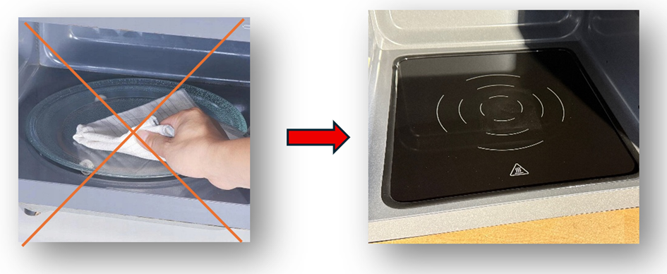 Z bezpečnostních důvodů MWO 240 neobsahuje skleněný talíř, žádné pohyblivé části.