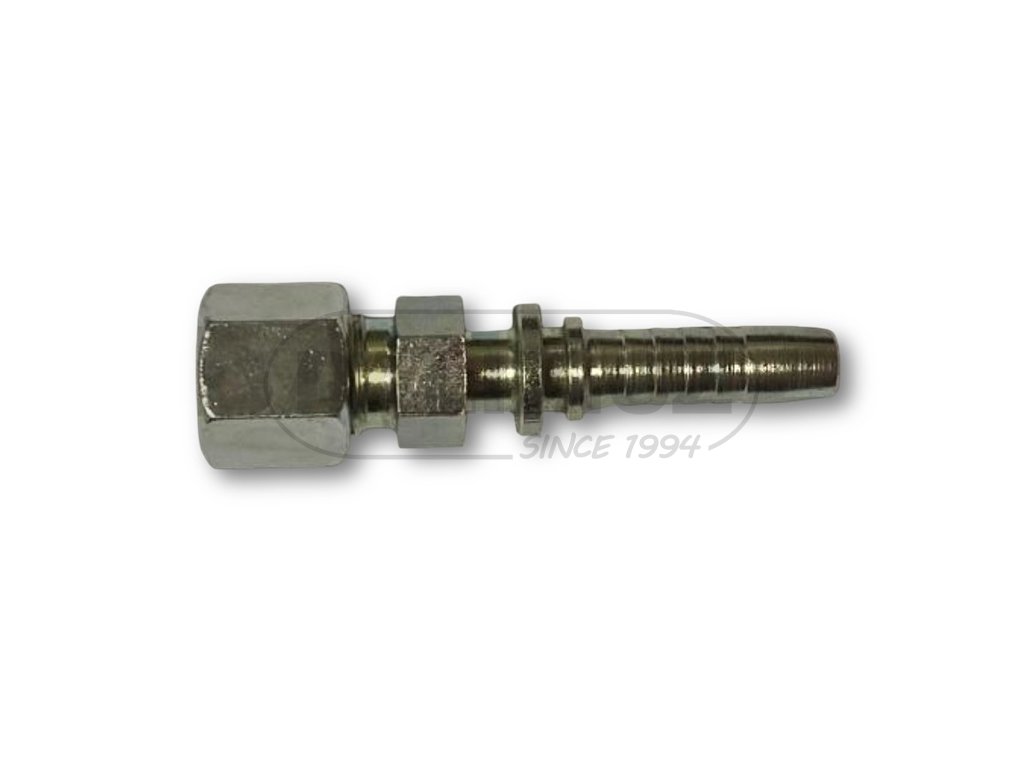 Kovový nátrubek s převlečnou maticí pro připojení hadice ø 8 mm na trubku ø 8 mm.