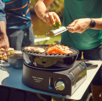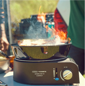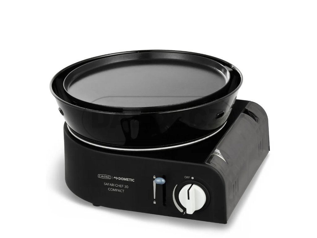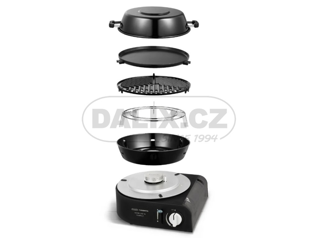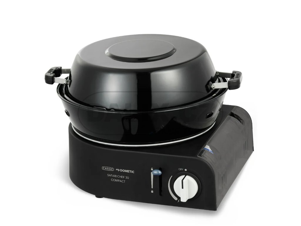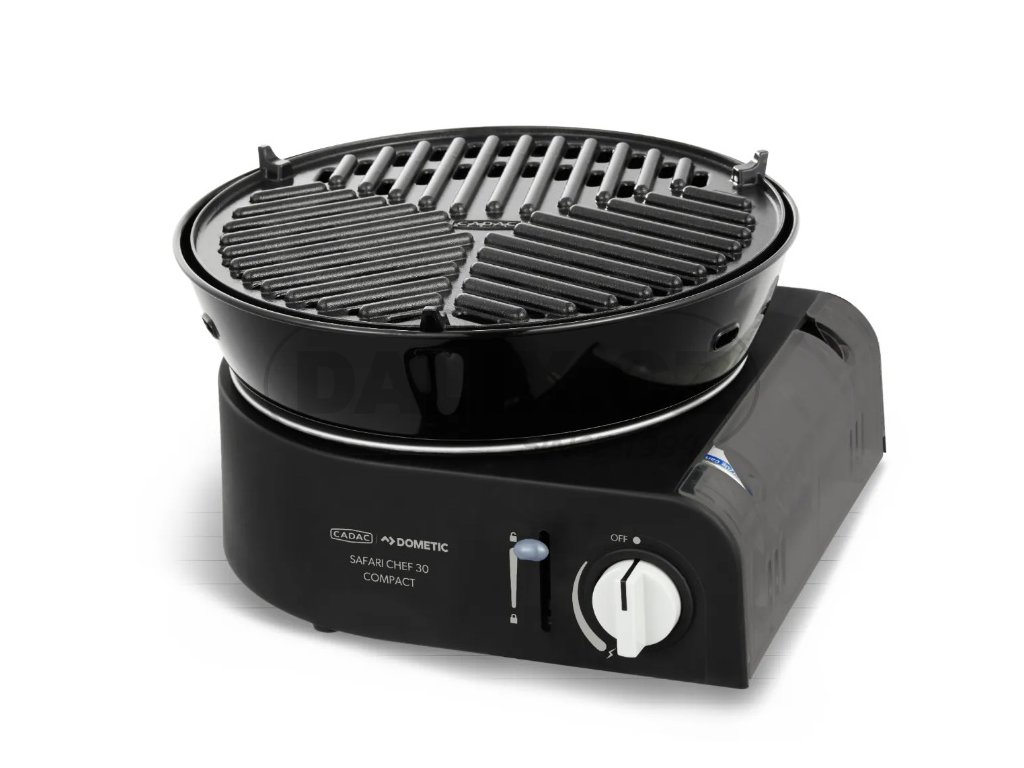 Přenosný gril CADAC Safari Chef Compact 30 je výjimečně kompaktní a lehký plynový gril. S tímto grilem můžete připravovat rozmanité pokrmy, díky různým grilovacím deskám: stojánek na hrnce, grilovací rošt, plochý talíř a víko, které lze použít také jako hrnec či wok pánev. Odnímatelná miska na tuk zachycuje zbytky z vaření, ale zároveň chrání hořák Safari Chef před větrem, aby nedošlo k jeho vyhoření. Všechny povrchy můžete snadno čistit mýdlovou vodou. Gril Safari Chef Compact lze jednoduše připojit k plynové kartuši o hmotnosti 227 g. Plynová kartuš není součástí balení. Safari Chef lze snadno vzít s sebou díky skládacím nohám a praktické tašce na přenášení. Jedná se o ideální gril pro použití v kempu, na balkoně nebo v parku.