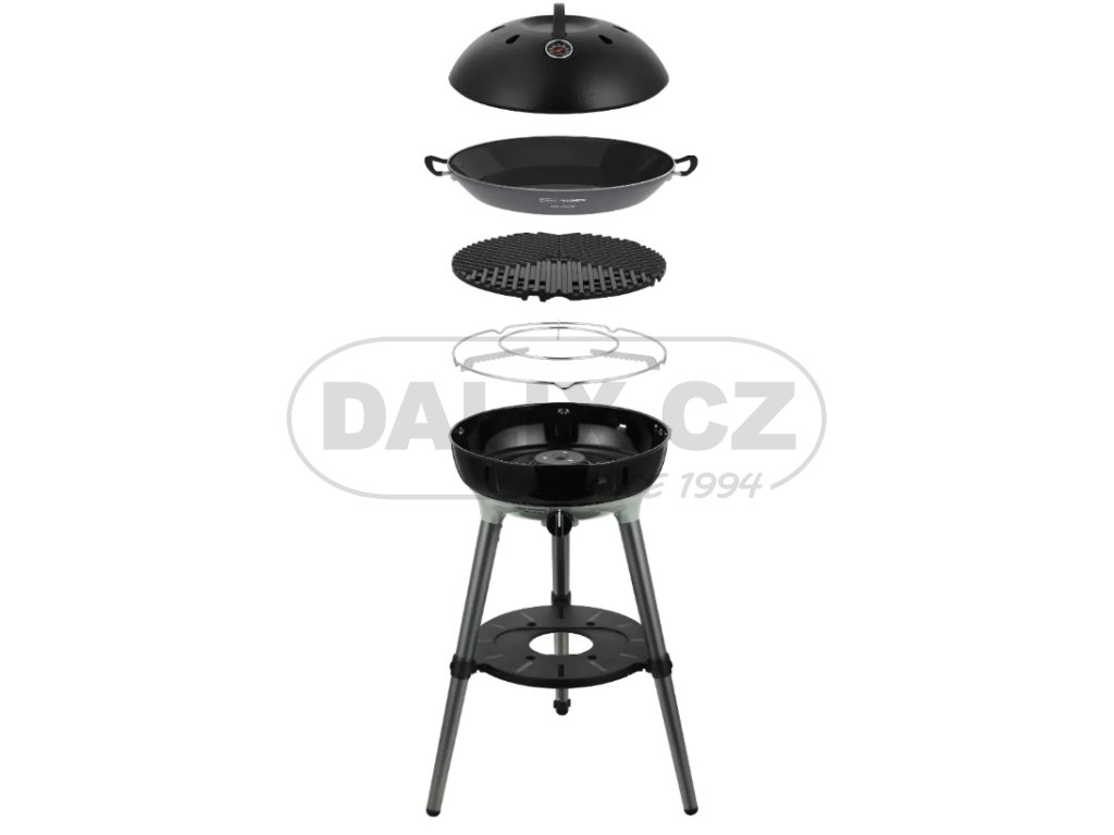 Gril Cadac Carri Chef 40 BBQ / Paella je lehký a přenosný. Jeho výkonný hořák z nerezové oceli s piezoelektrickým zapalováním zajišťuje optimální teplotu. Zavřením víka se vytvoří lze použít jako troubu, je ideální pro pečení nebo dušení. Víko s integrovaným teploměrem lze připevnit na bok grilu jako ochranu před větrem a stříkající vodou, čímž je zajištěna ideální teplota pro grilování masa, ryb nebo zeleniny. Tento středně velký, lehký gril je vybaven automatickým piezoelektrickým zapalováním a individuálně nastavitelnou regulací teploty. Tento robustní, kompaktní a přenosný gril je ideální pro kempování. Díky integrovanému difuzoru tepla pod grilovací plochou se teplo rovnoměrně rozkládá. Povrchová úprava CADAC GreenGrill nejen podporuje zdravější vaření, ale také usnadňuje čištění. Odnímatelnou misku na tuk lze pohodlně čistit mýdlovou vodou. Gril je vybaven nastavitelnou nohou pro zajištění stability na jakémkoli povrchu nebo terénu.