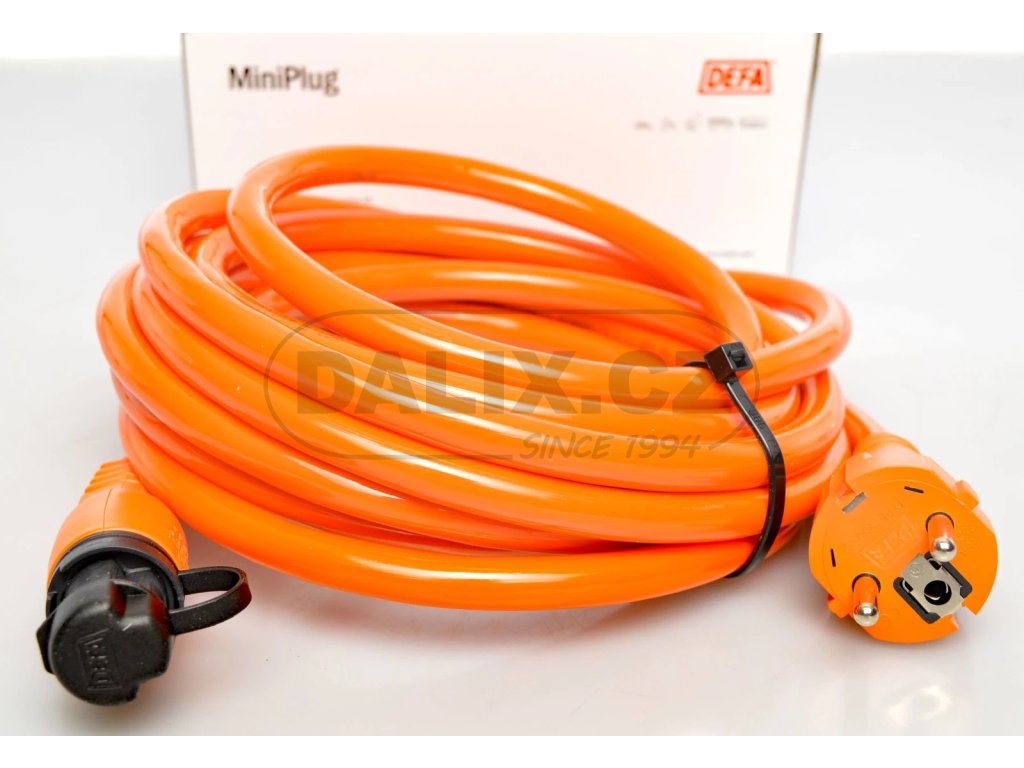 Defa propojovací kabel mezi vozidlem (DEFA MiniPlug-zásuvkou zařízení) a síťovou zásuvkou 230V AC. Kabel má průřez 2,5mm2 a zvládne zatížení 16A. Délka 10m