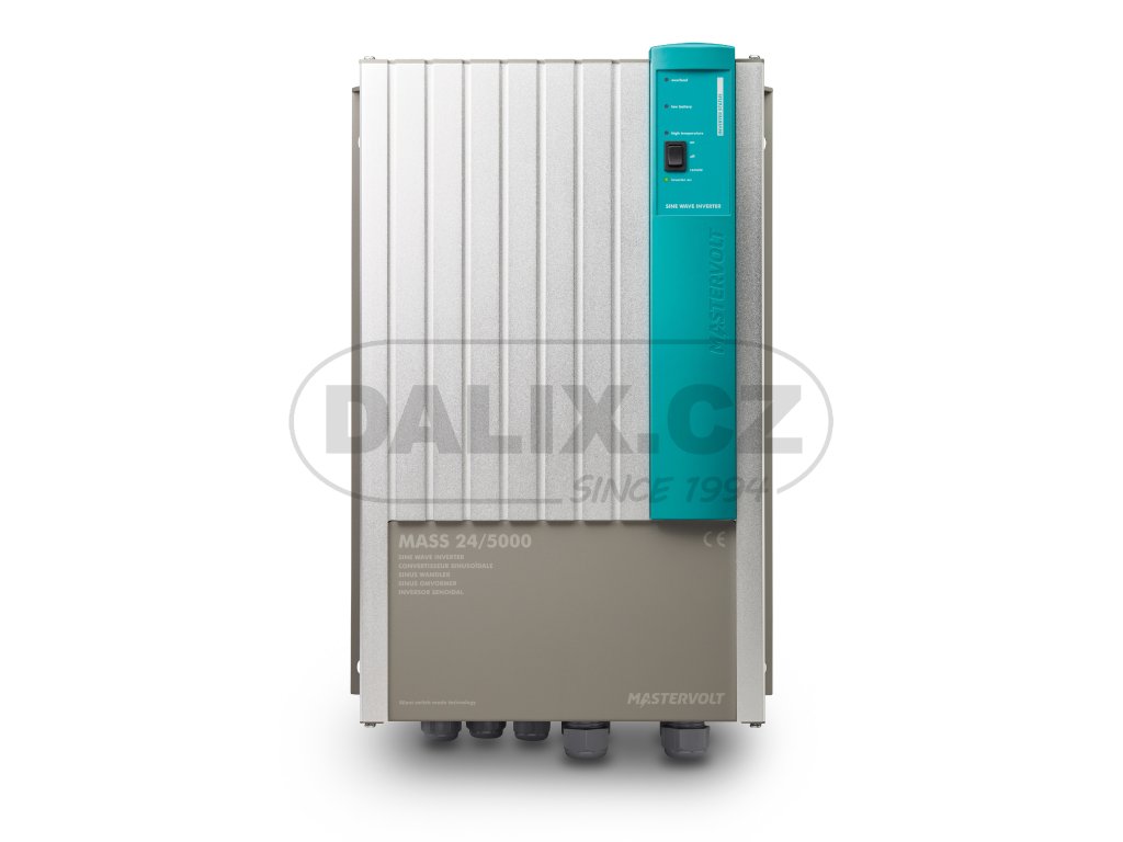 Měnič napětí MASTERVOLT Mass Sine je určen ke změně stejnosměrného napětí 24V DC na střídavé napětí 230V AC. Měnič s čistým sinusovým výstupem je plně automatický a vysoce efektivní. Měnič je vybaven ochranou proti zkratu, ochranou proti podpětí a přepětí, tepelnou ochranou proti přehřátí. LED diody signalizují stav provozu. Měnič je kromě mnoha praktických úchytů vybaven výstupem pro připojení dálkového ovládání a externího ON/OFF vypínače. Mass Sine se vyznačuje snadným ovládáním přímo na zařízení. Protože jsou měniče často vestavěné, dodáváme také efektivní dálkový ovládací panel C4-RI. Kromě toho lze Mass Sine ovládat pomocí intuitivního displeje EasyView 5 díky integraci komunikace MasterBus pomocí rozhraní střídače MasterBus nebo analyzátoru střídavého proudu.