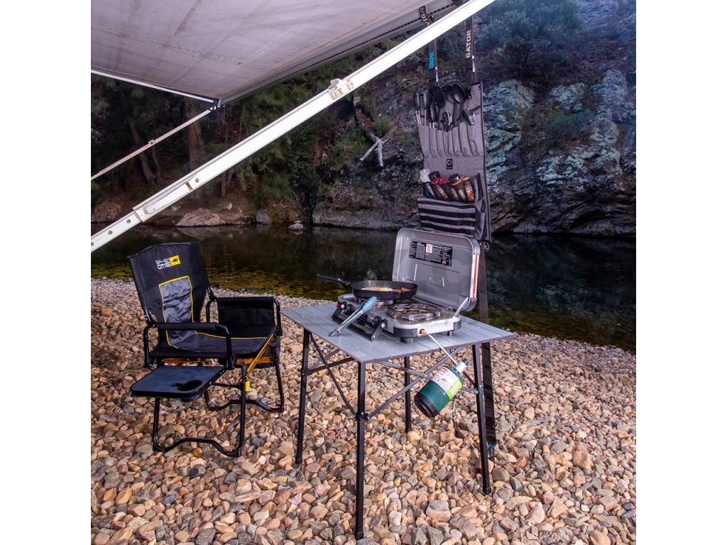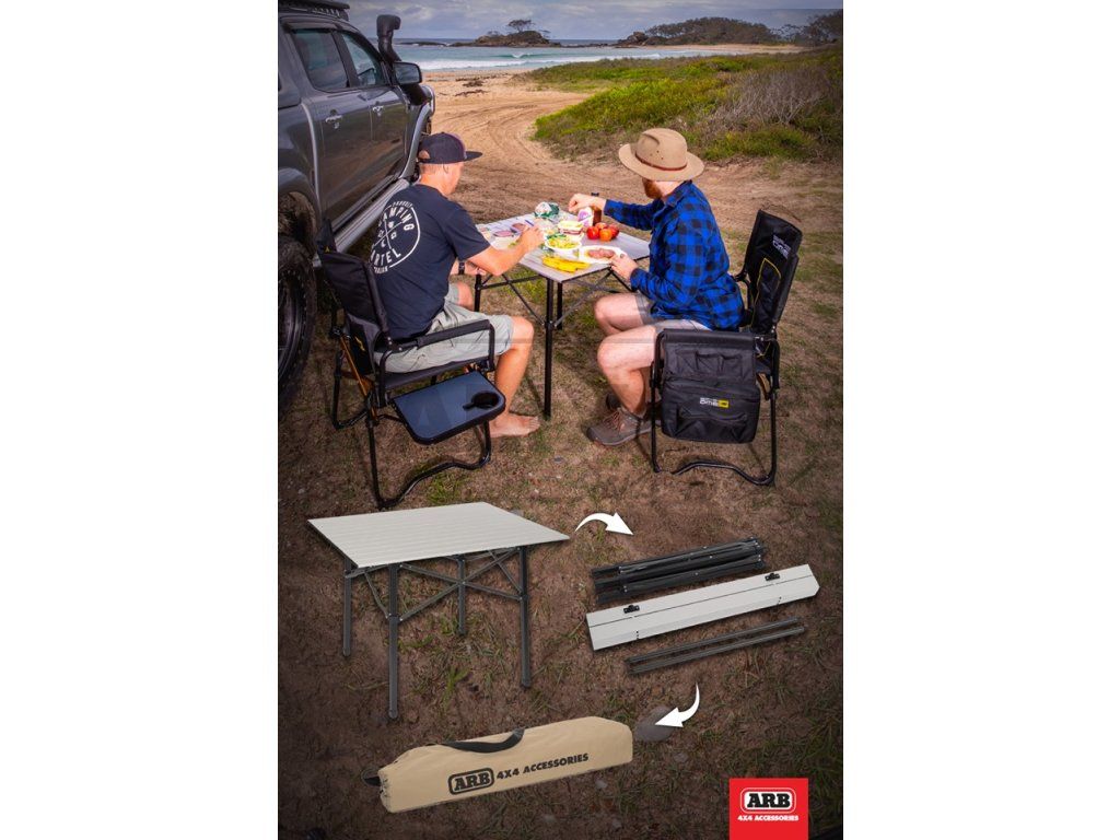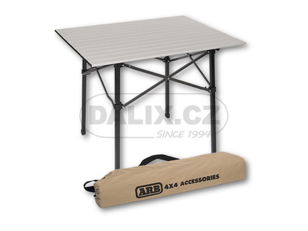 Jedná se o hliníkový stolek, který je pevný a současně má tepelně odolný povrch. Právě proto je jako stvořený pro vaření. Dostatečnou oporu dodávají stolu křížové výztuhy, které zvyšují stabilitu společně s nohami stolu, které jsou vyrobené z čtvercových trubek. Stůl je dodáván v praktickém obalu podobně jako campingové židle ARB. I přes kompaktní rozměry ve složeném stavu (88 cm délka x 21 cm šířka x 12,5 cm výška) stůl nabídne dostatečný prostor pro 4 osoby. Rozložený stůl totiž nabízí obdélníkovou plochu 70 cm x 86 cm. Skládací kempingový stůl, velmi užitečný na jakémkoli kempování. Složení a rozložení trvá desítky sekund. Lehký a snadno přenosný, není potřeba montovat žádné nářadí. Stůl lze uložit do kompaktní brašny, díky čemuž má ideální velikost pro úhledné sbalení do auta