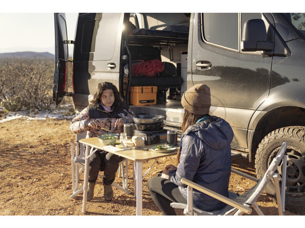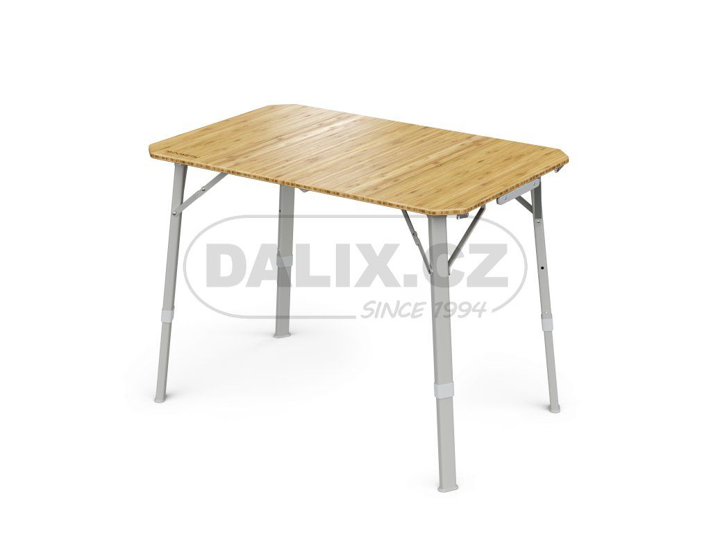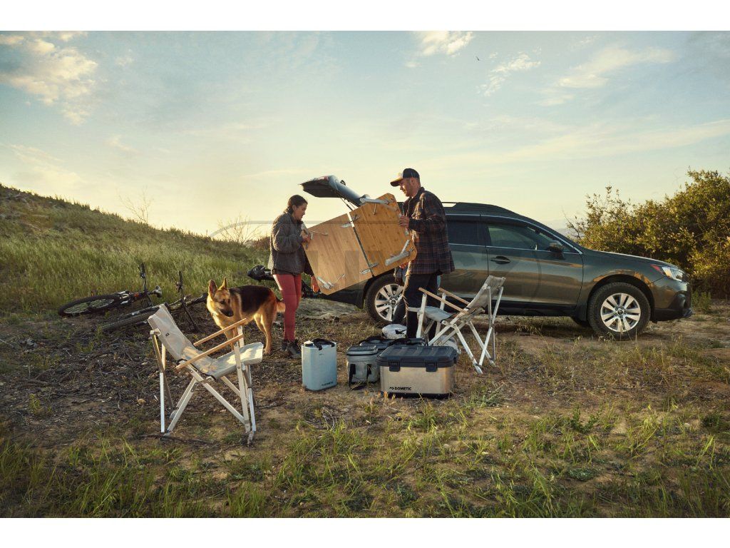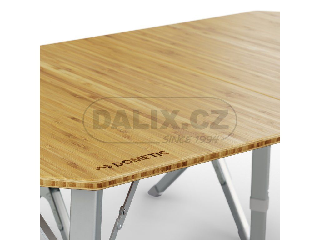 Stůl CMP T4 od společnosti Dometic se vyznačuje odolným bambusovým povrchem a robustními hliníkovými nohami, které se pro přepravu skládají na polovinu velikosti kufru. V závislosti na zamýšleném použití lze stůl nastavit do tří různých výšek.