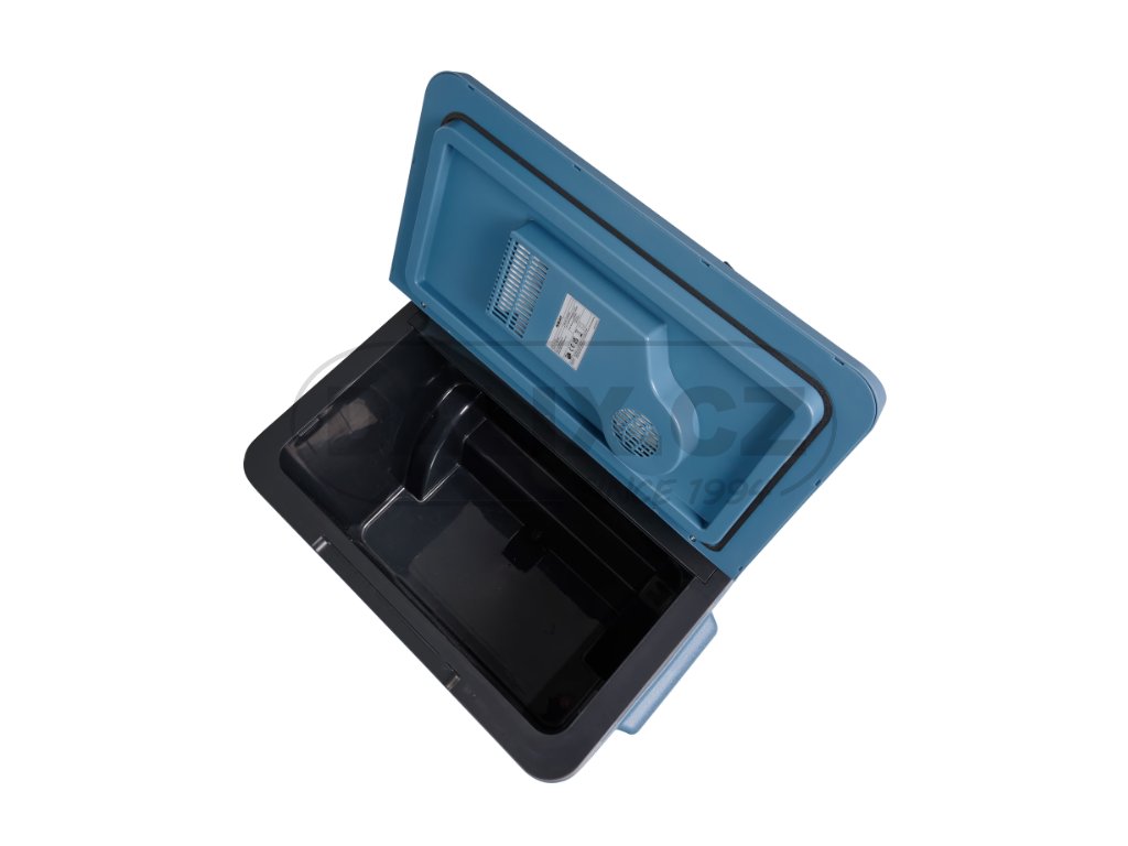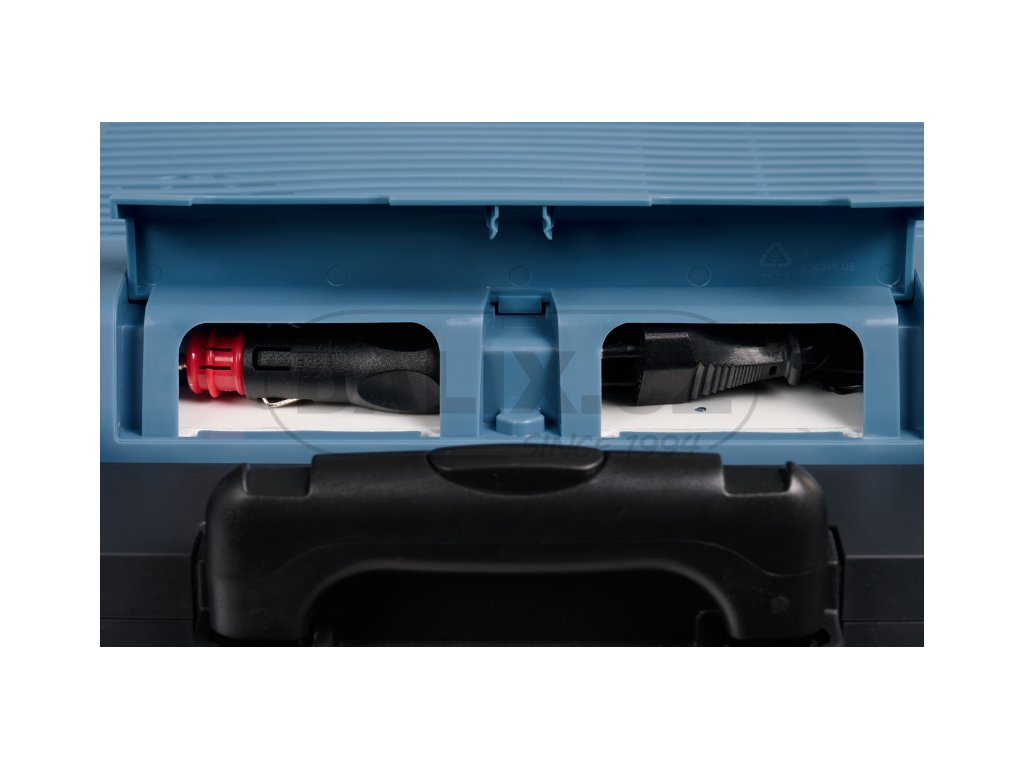 Napájecí kabely lze přehledně uložit do přihrádky do otvoru ve víku. Systém dvojitého ventilátoru a velkorysá izolace zajišťují silný chladicí účinek až 20 °C pod okolní teplotou. V režimu střídavého proudu zajišťuje režim Eco nižší spotřebu energie při sníženém chladicím výkonu.