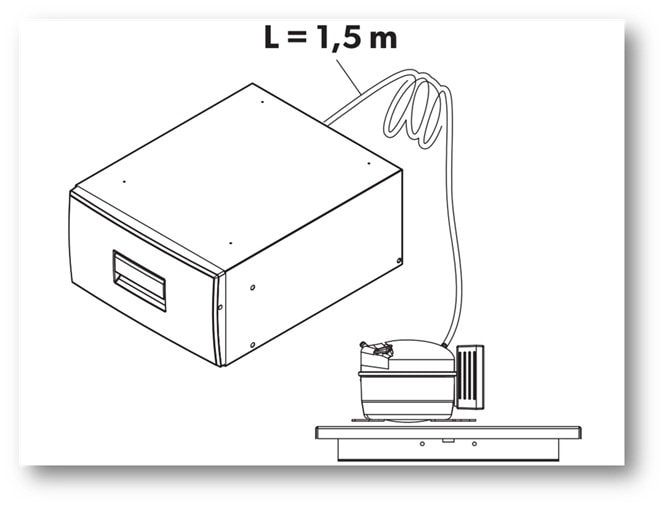 Kompresor lze umístit až do vzdálenosti 1,5 m od auto chladničky anebo uložit na pravou či levou stranu. K tomu slouží zabudované matice v bočních stěnách.